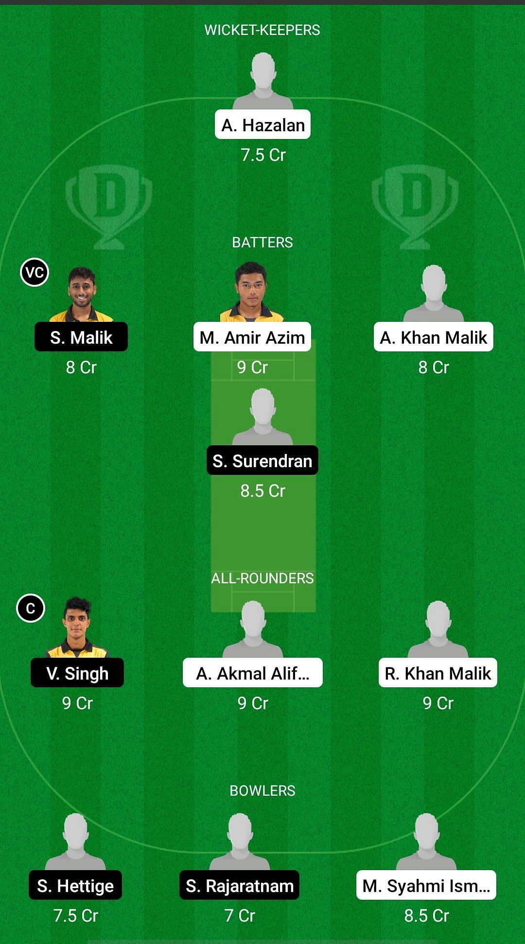 Batters: Saifullah Malik, Muhammad Amir Azim, Sharveen Surendran, Muhammad Haziq Aiman