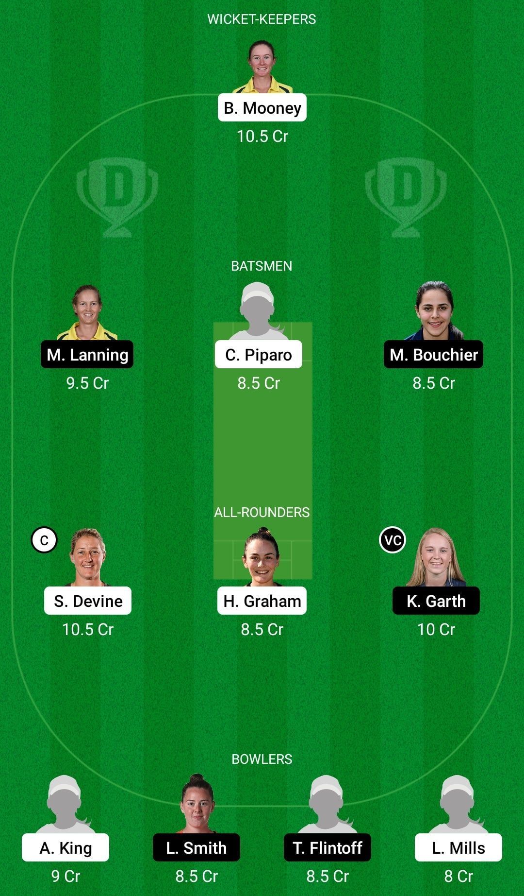 Captain: Sophie Devine. Vice-captain: Kim Garth