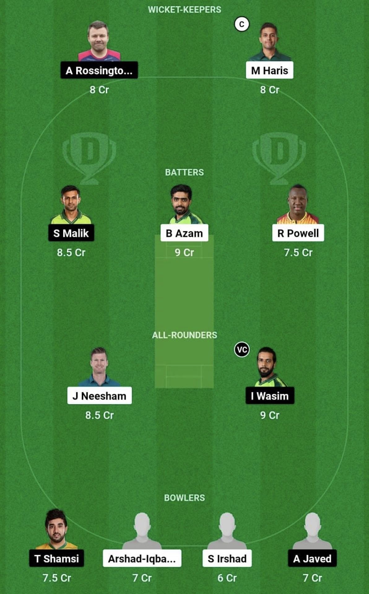 Batters: Shoaib Malik, Babar Azam, Rovman Powell