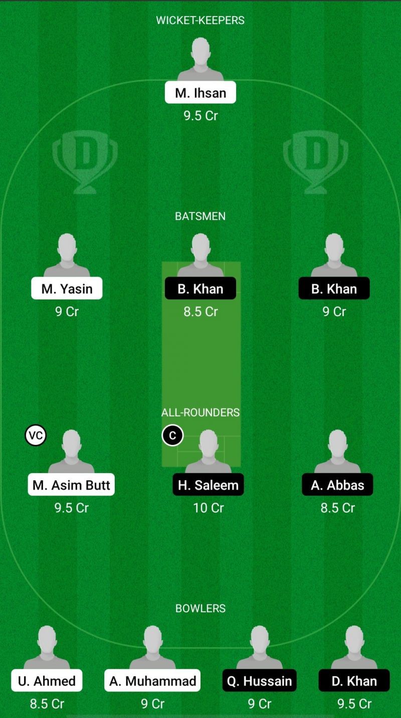 Fantasy Suggestion #1: Muhammad Ihsan, Bilawal Khan, Mohammad Yasin, Babar Khan, Muhammad Asim Butt, Adeel Abbas, Hamza Saleem, Qasim Hussain, Atif Muhammad, Umair Ahmed, Dilawar Khan.