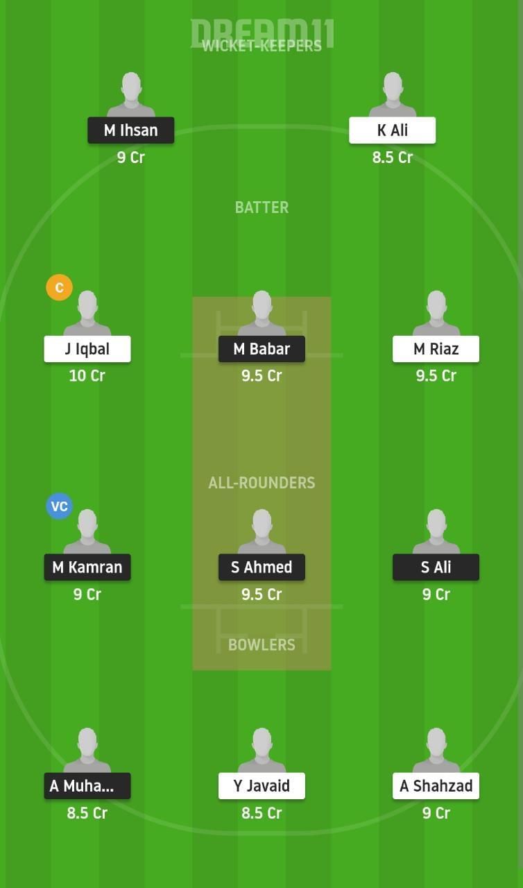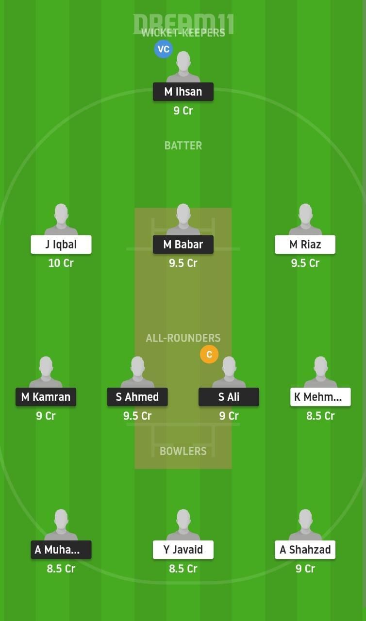 Fantasy Suggestion #1: M Ihsan, M Riaz, J Iqbal, M Babar, K Mehmood, S Ali, S Ahmed, M Kamran, A Shahzad, Y Javaid, A Muhammad