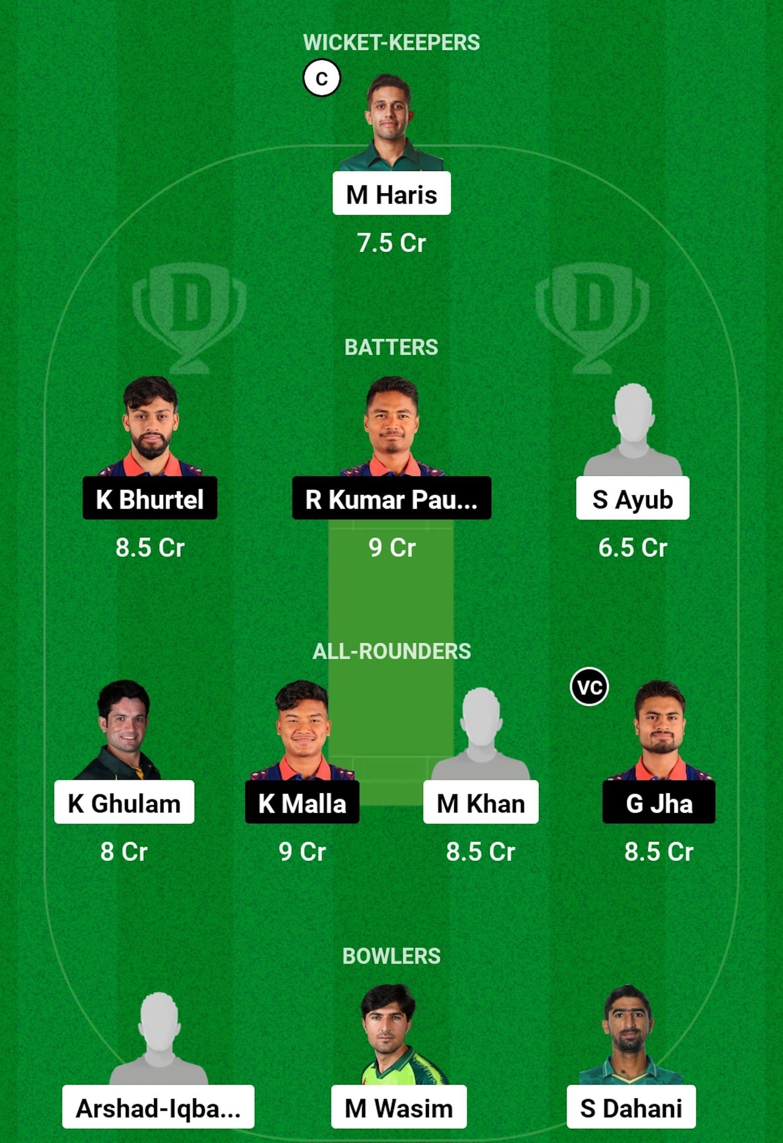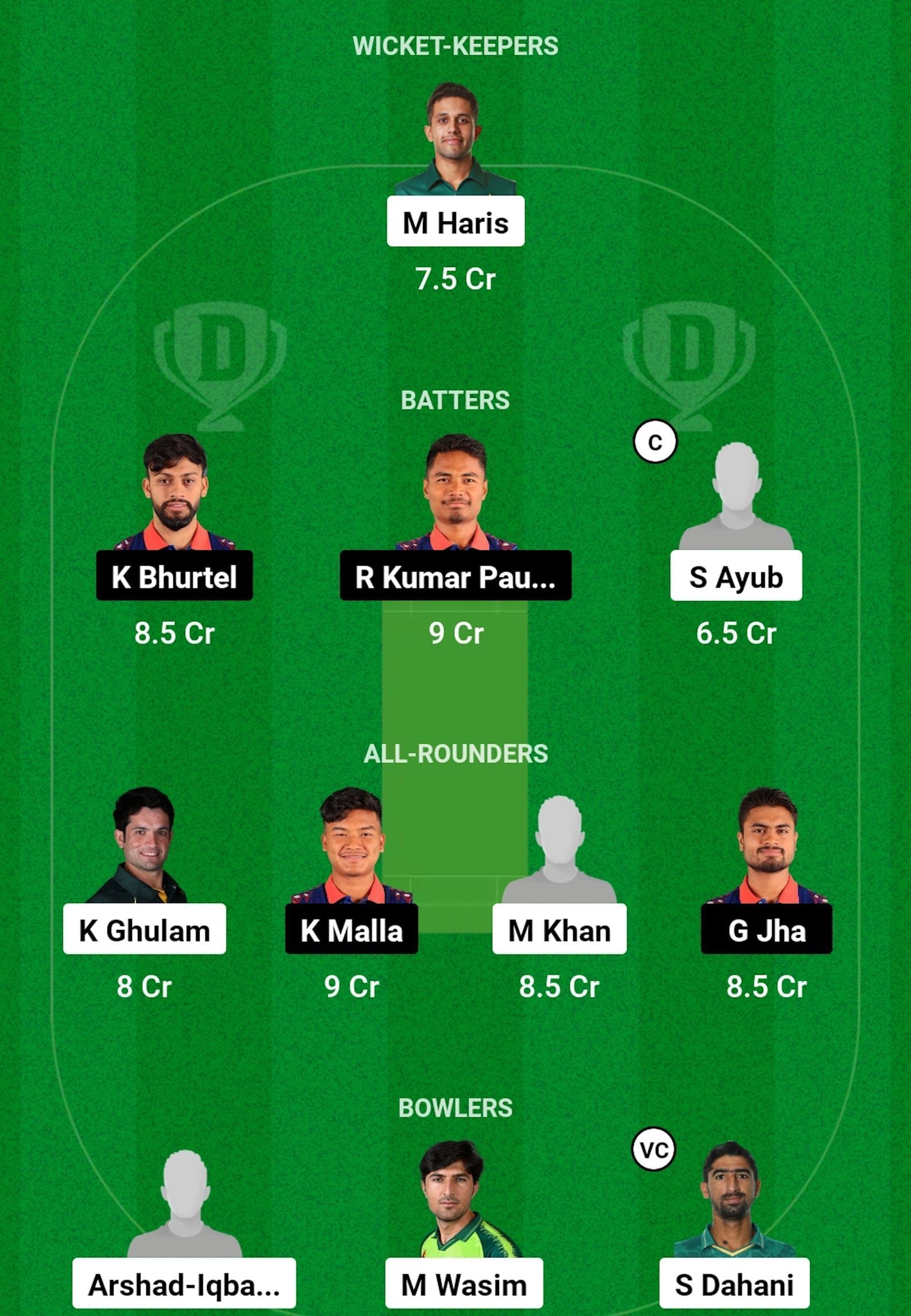 PK-A vs NEP Dream11 Prediction, Match 4, Grand League Team