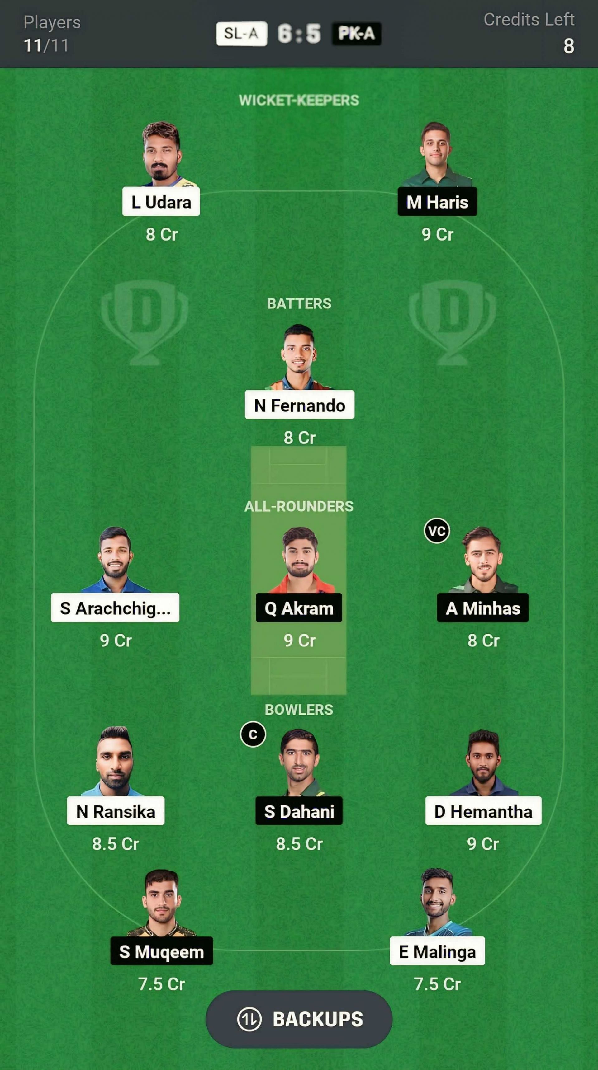 PK-A vs SL-A match captain and vice-captain choices