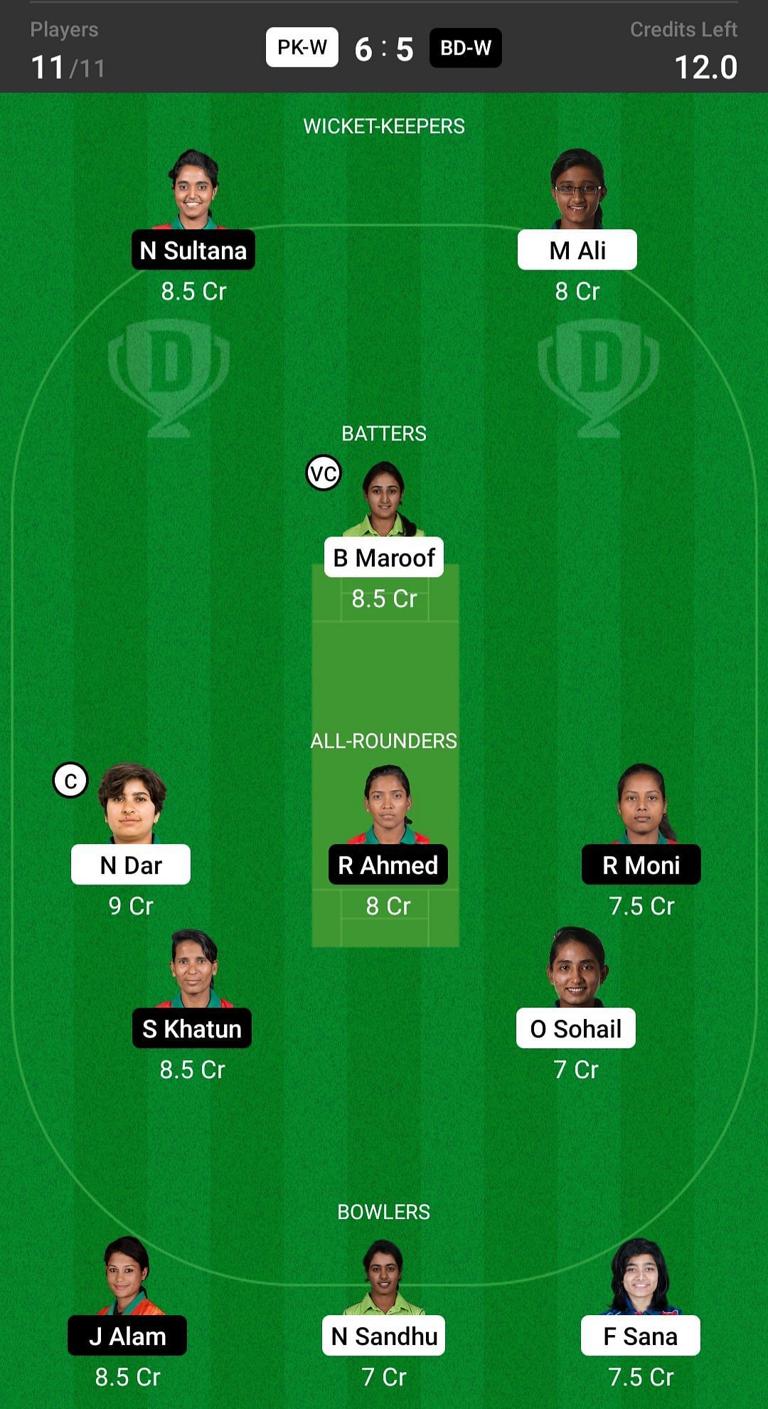 Pakistan Women vs Bangladesh Women Dream11 Prediction Today, Grand League