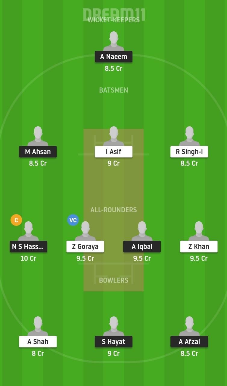 Fantasy Suggestion #1: A Naeem, M Ahsan, I Asif, R Singh, N S Hassan, A Iqbal, Z Goraya, Z Khan, S Hayat, A Afzal, A Shah