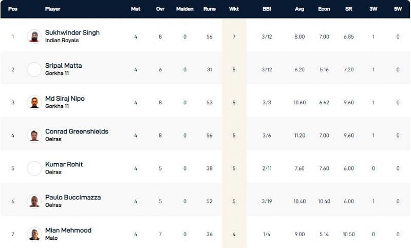 The Gorkha 11 duo of Sripal Matta and Md Siraj Nipo are among a host of bowlers who have picked up five wickets apiece in the tournament thus far. They are placed second and third on the wicket-taking charts based on their economy rates.
