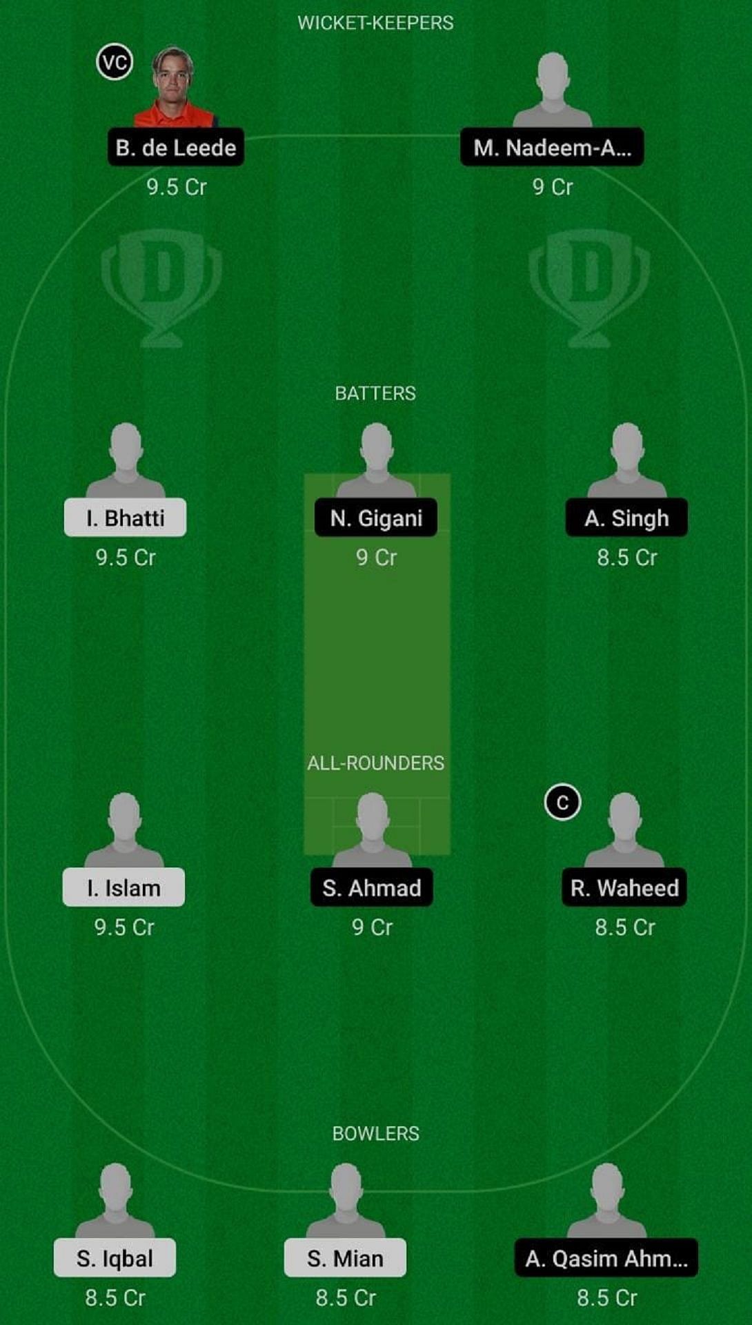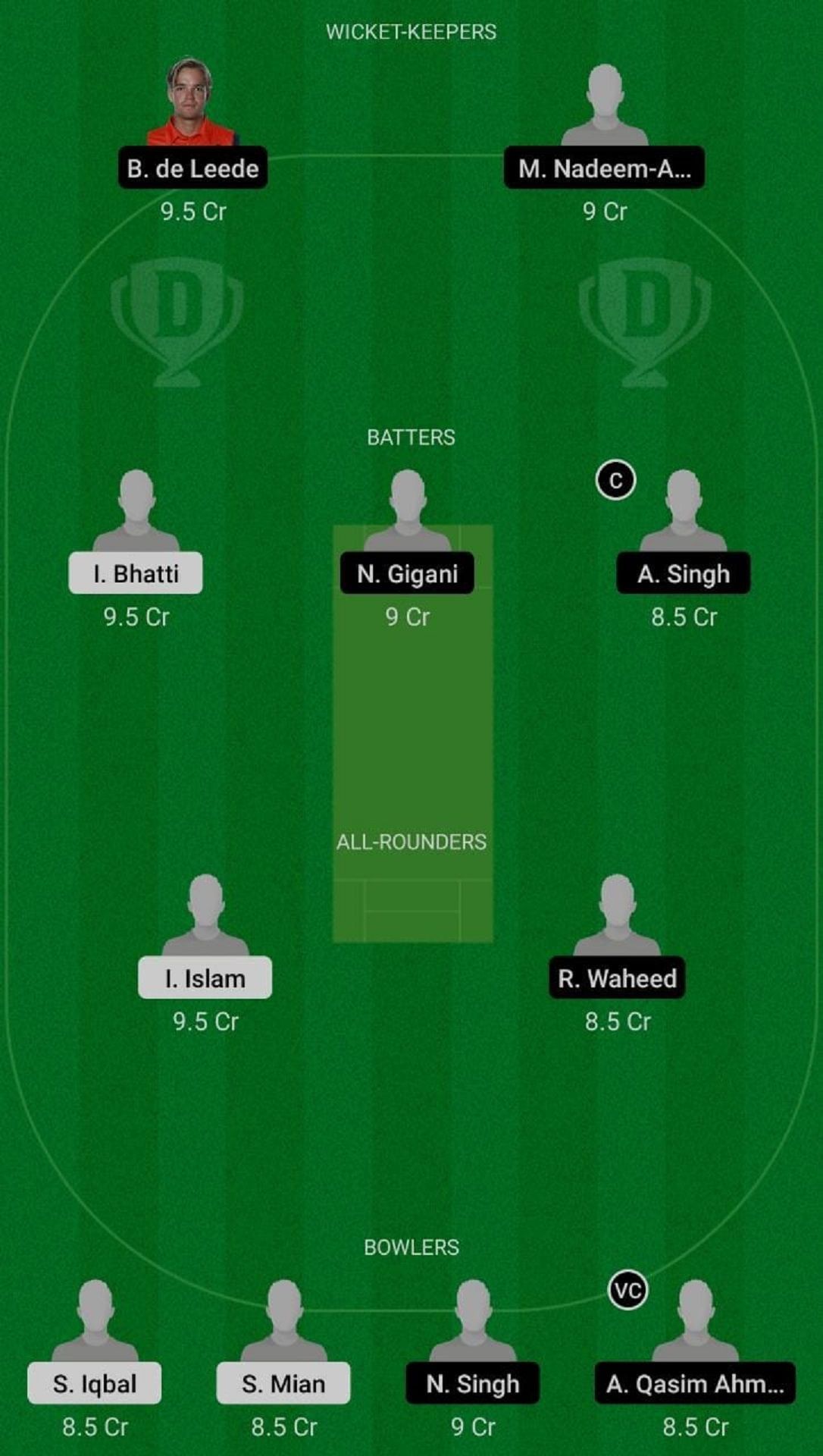 Fantasy Suggestion #1: B de Leede, M Nadeem Ahmad, A Singh, N Gigani, I Bhatti, R Waheed, S Ahmad, I Islam, A Qasim Ahmad, S Mian, S Iqbal