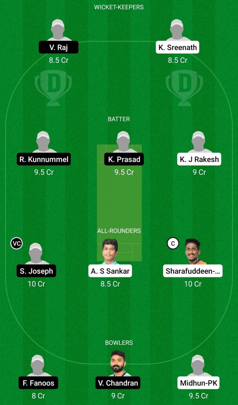 Fantasy Suggestion #1: Vishnu Prasad, Sreenath K, Rohan Kunnummal, Krishna Prasad, Rakesh KJ, Sijomon Joseph, Aswanth S Sankar, Sharafuddeen NM, Fazil Fanoos, Vaisakh Chandran, Midhun P K
