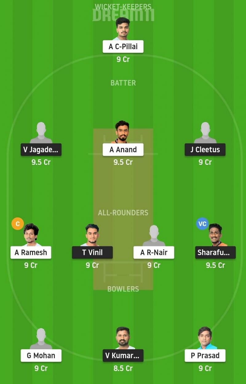 Fantasy Suggestion #2: A-C Pillai, J Cleetus, A Anand, V Jagadeesh, Sharafuddeen, Midhun-PK, T Vinil, A Ramesh, P Prasad, V Kumar C-V, G Mohan
