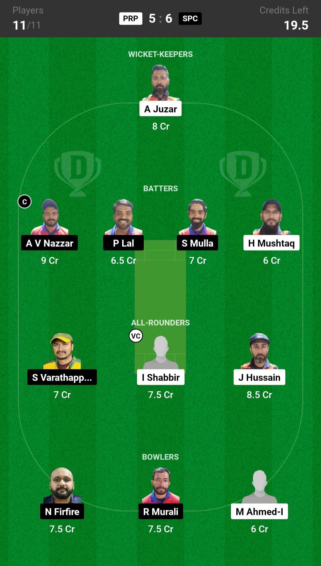 P Lal and A V Nazzar are the two best batsmen picks for the Dream11 team. H Mushtaq played exceptionally well in the last series, so he is also a good pick for today's Dream11 fantasy team.