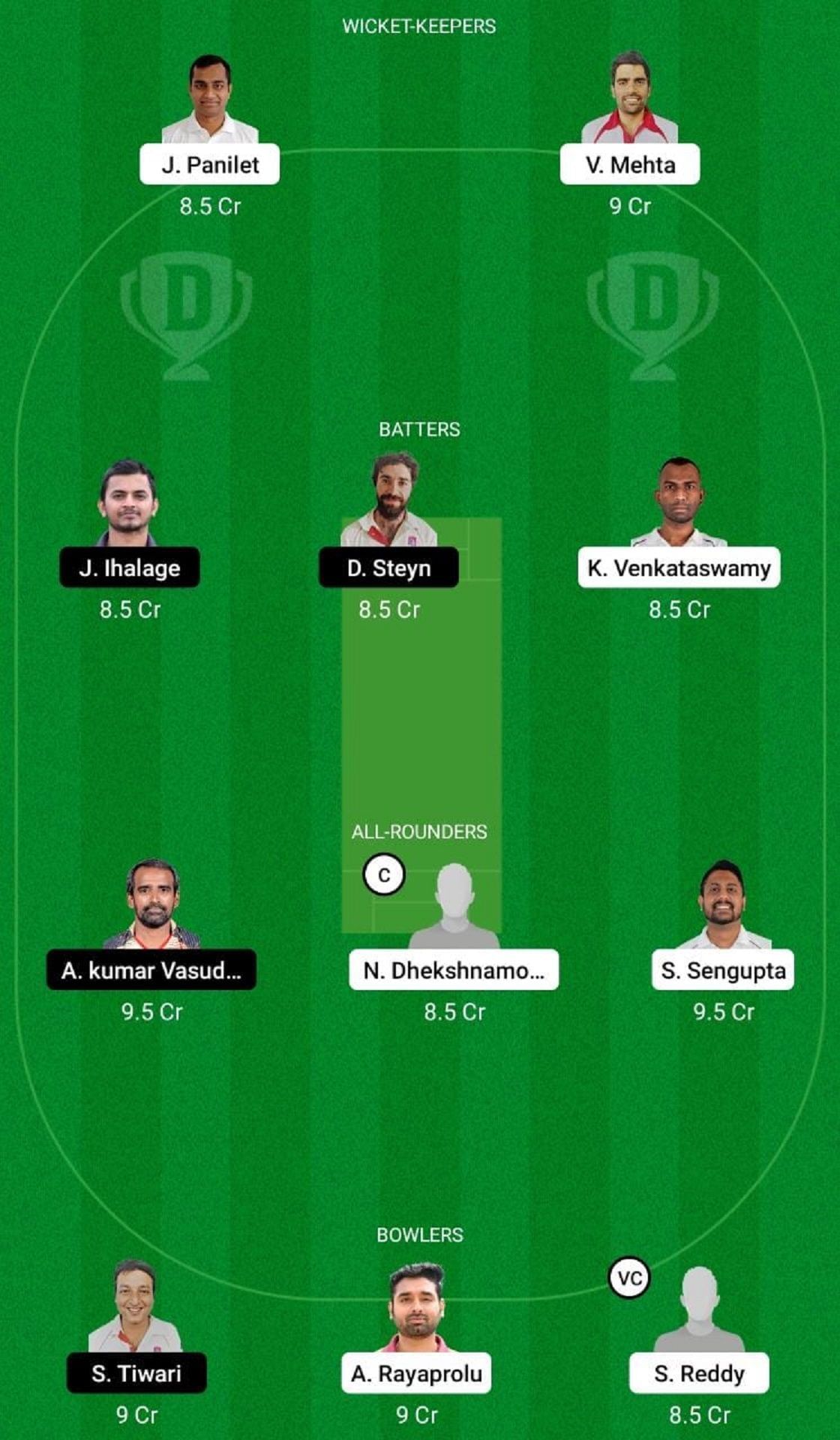 Fantasy Suggestion #2: V Mehta, J Panilet, D Steyn, J Ihalage, K Venkataswamy, S Sengupta, N Gunasekaran, A Vasudevan, S Reddy, A Rayaprolu, N Ahmed, S Tiwari