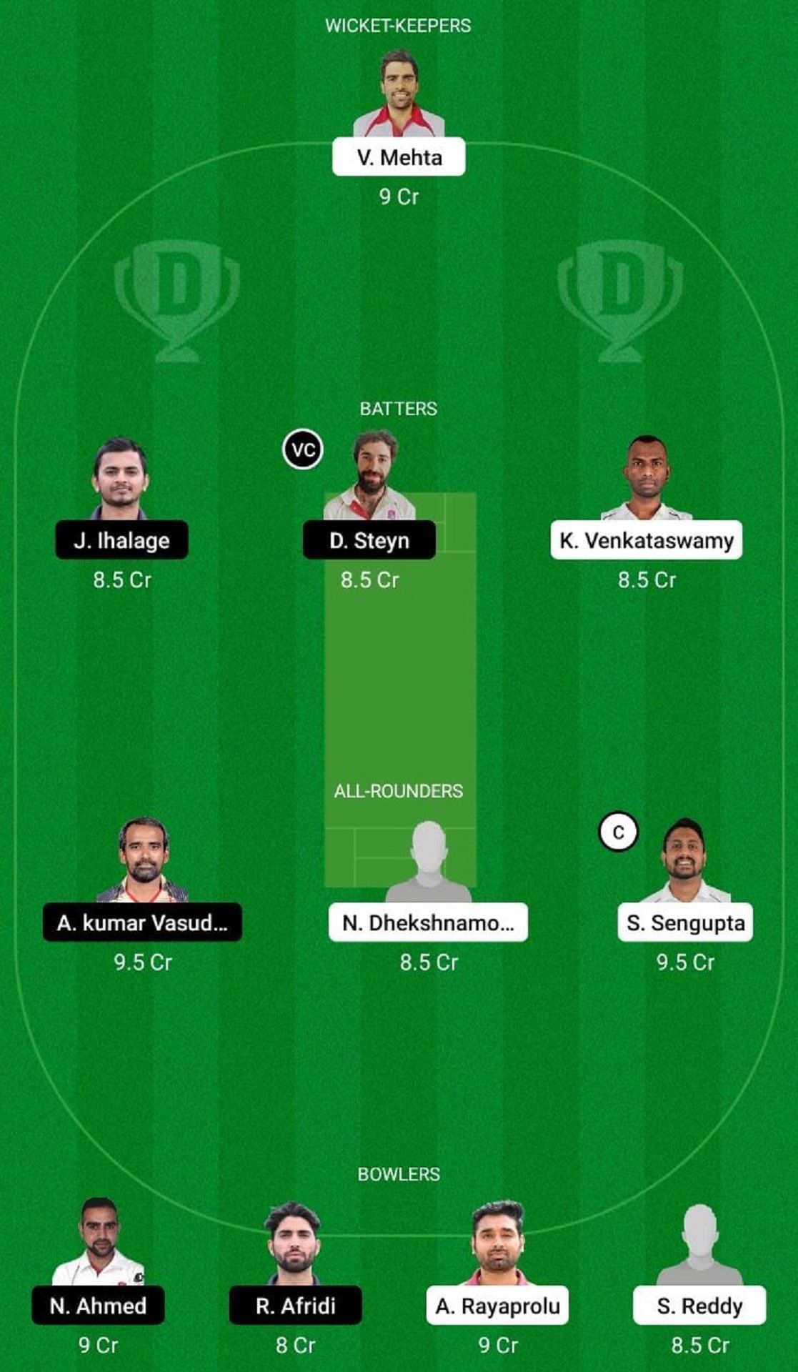 Fantasy Suggestion #1: V Mehta, D Steyn, J Ihalage, K Venkataswamy, S Sengupta, N Gunasekaran, A Vasudevan, S Reddy, R Afridi, A Rayaprolu, N Ahmed