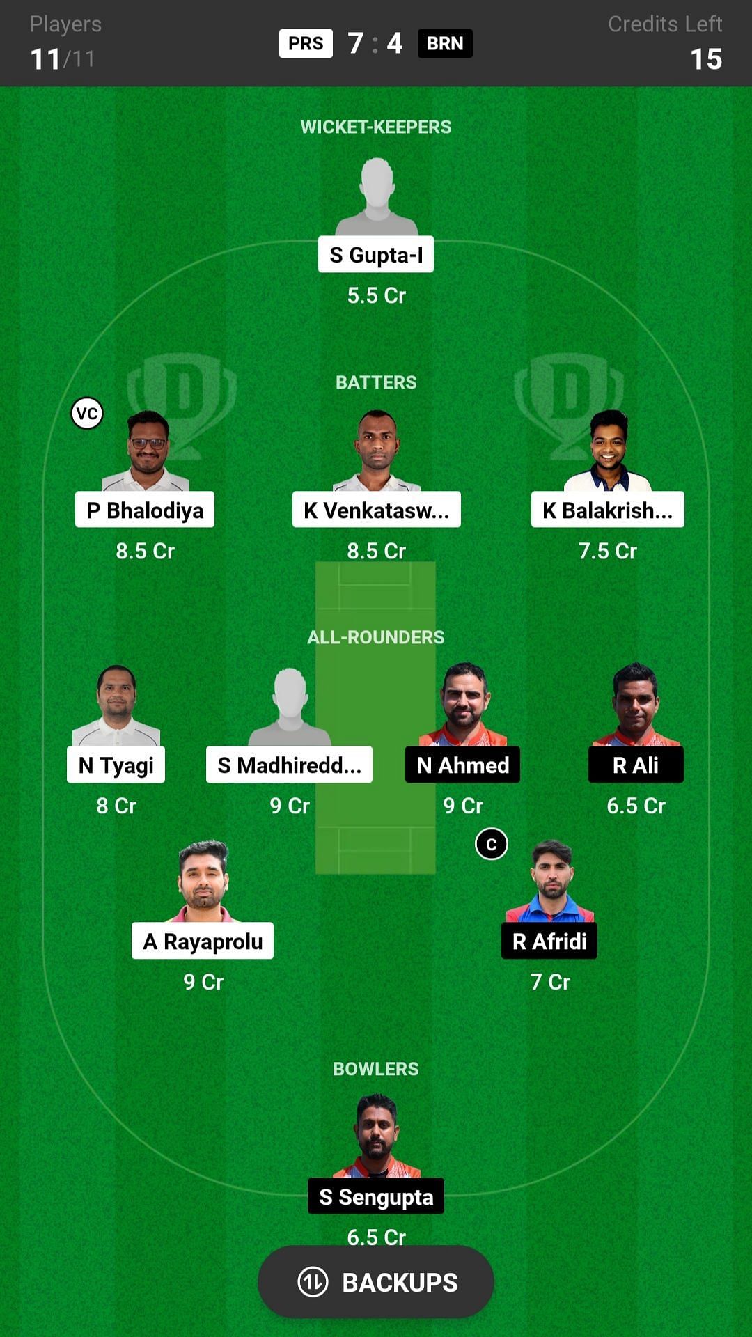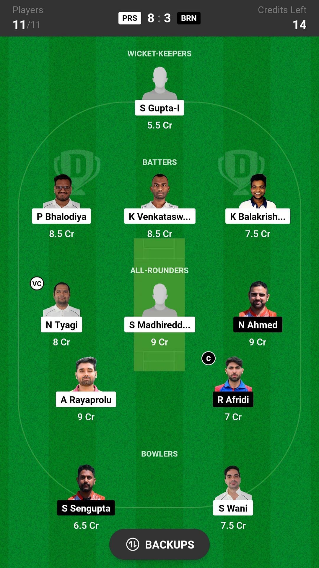 PRS vs BRN match captain and vice-captain choices