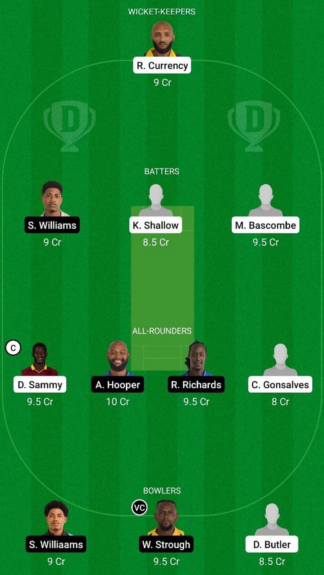 Fantasy Suggestion #2: R Currency, M Bascombe, S Williams, K Shallow, C Gonsalves, A Hooper, R Richards, D Sammy, W Strough, S Williaams, D Butler