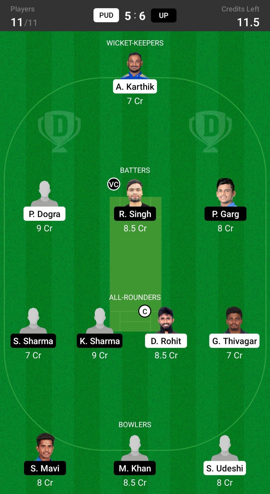P Garg and P Dogra are the two best batter picks for the Dream11 team. R Singh is another good pick for today's Dream11 team. He has performed exceptionally well in the last few matches.