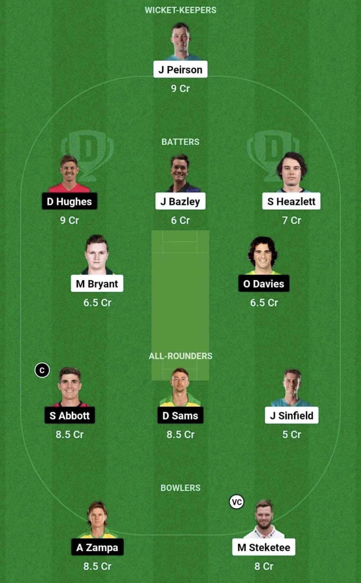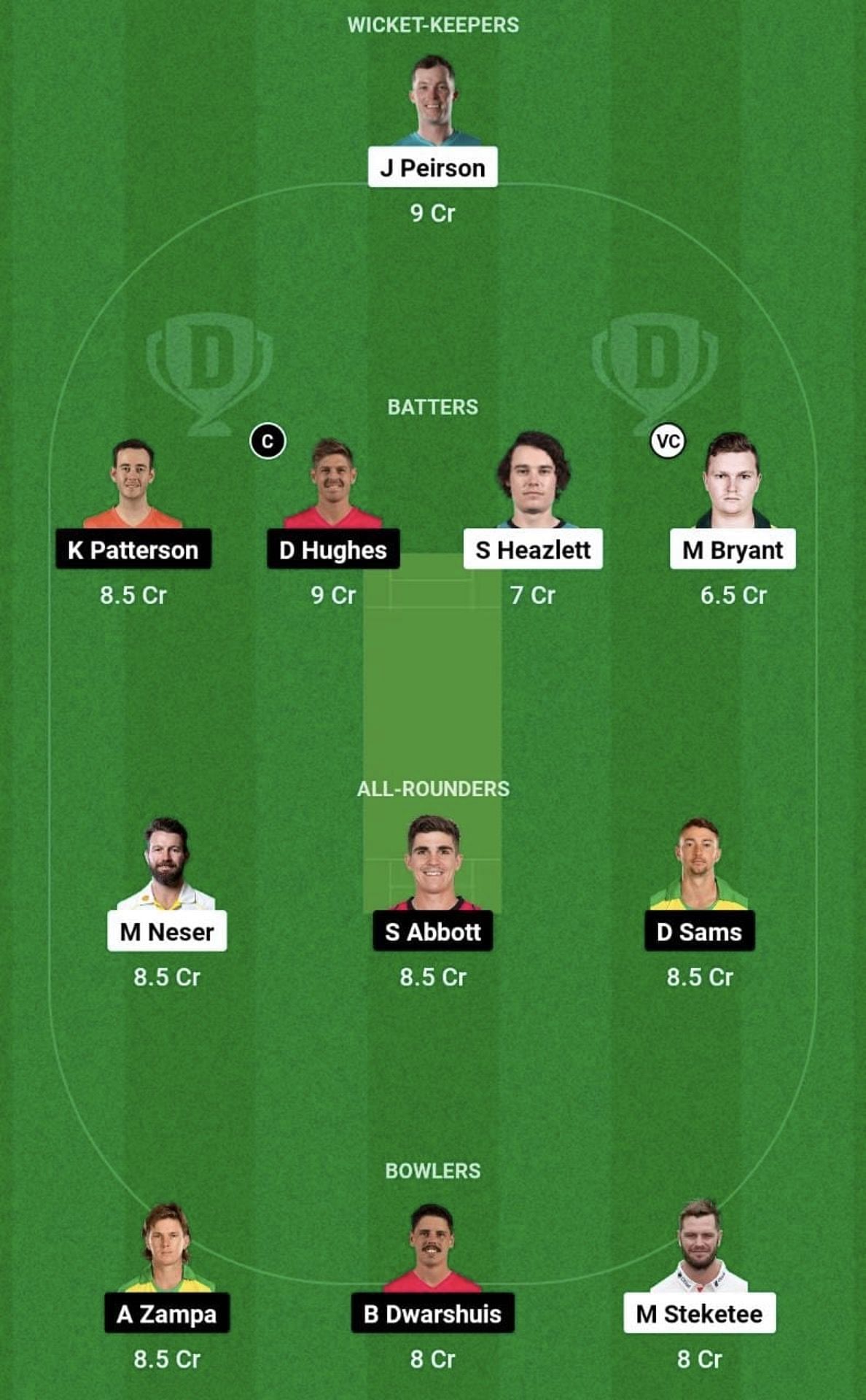 Matthew Gilkes (wk), Daniel Hughes, Kurtis Patterson (c), Oliver Davies, Moises Henriques, Hayden Kerr, Daniel Sams, Sean Abbott, Ben Dwarshuis, Chris Green, and Adam Zampa.