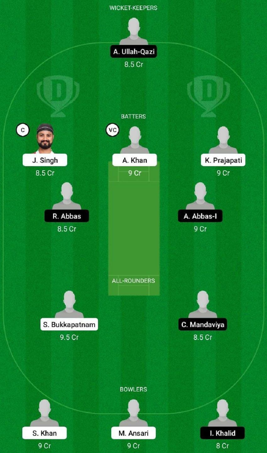 Fantasy Suggestion #2: R Abbas, A Ullah-Qazi, J Singh, A Khan, K Prajapati, A Abbas, S Bukkapatnam, C Mandaviya, S Khan, M Ansari and I Khalid