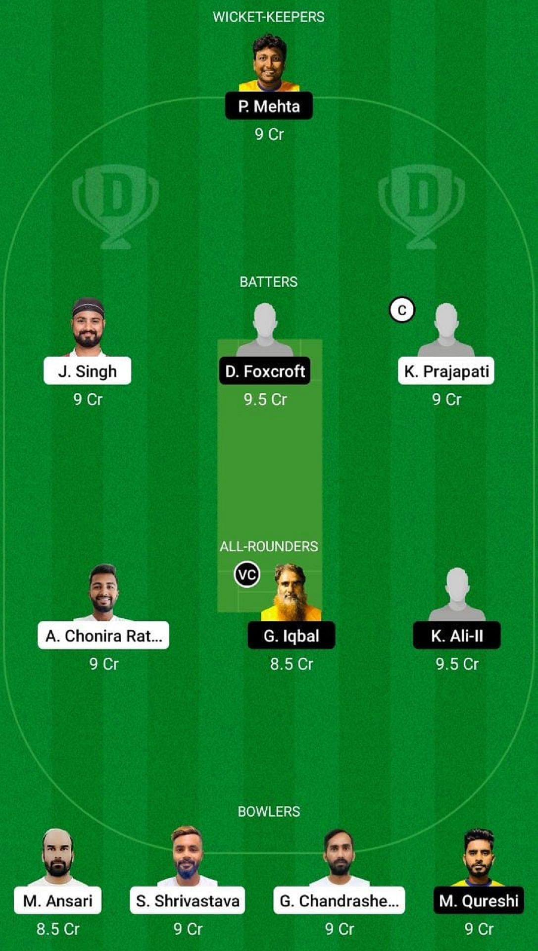 Captain: K Prajapati. Vice-Captain: G Iqbal.