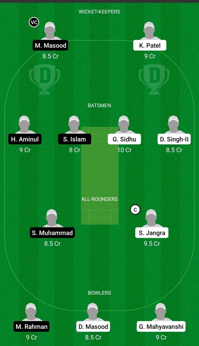 Fantasy Suggestion #1: Muhammad Masood, Kishitij Patel, Hussain Aminul, Sofiqul Islam, Gurwinder Sidhu, Davinder Singh, Saqib Muhammad, Sonu Jangra, Moshiur Rahman, Dawood Masood, Gaurang Mahyavanshi