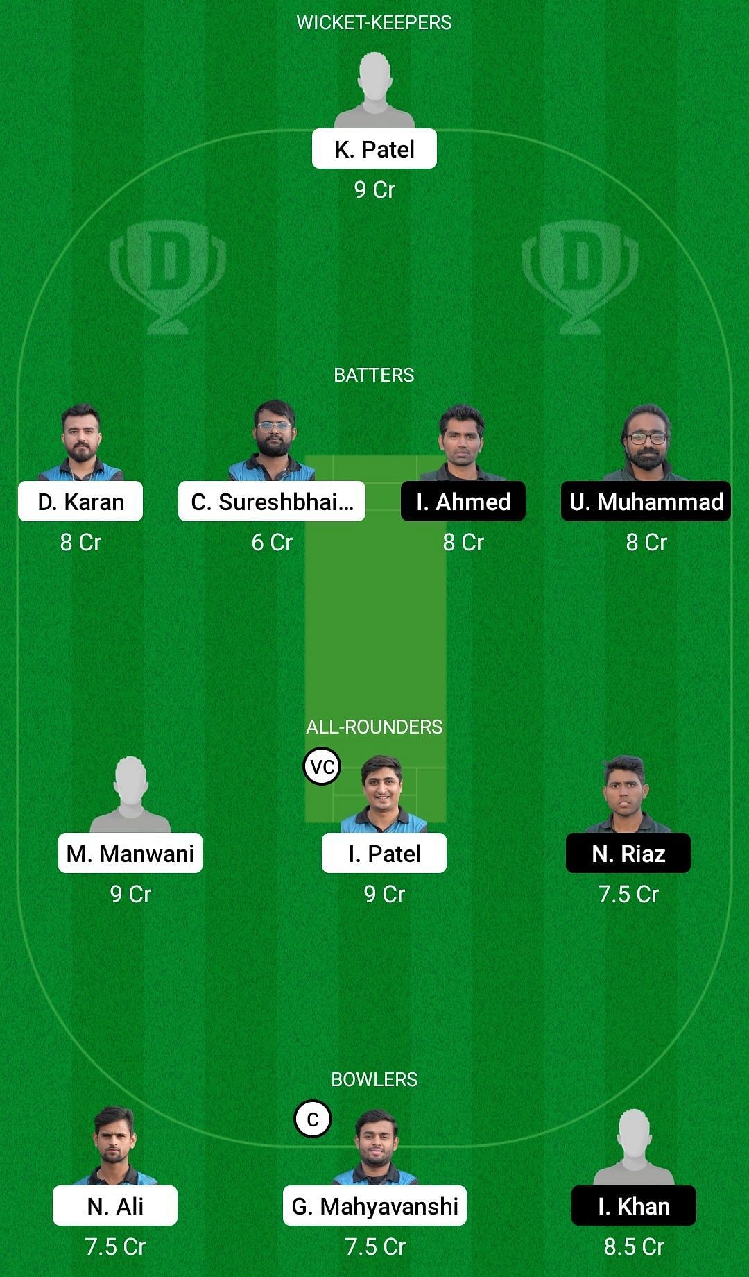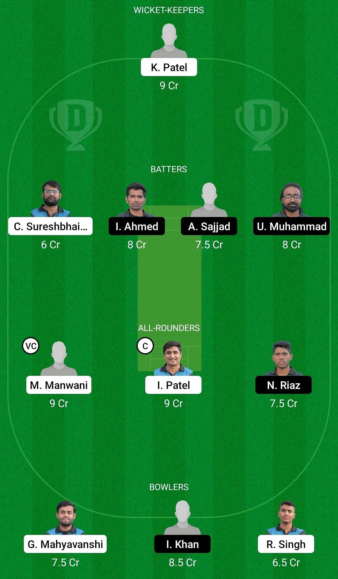 Raval Sporting Probable Playing XI: Ishan Patel (c), Karan Datta, Kishitij Patel (wk), Manish Manwani, Chyet Patel, Unnatkumar Patel, Numan Ali, Gopi Waraich, Gaurang Mahyavanshi, Muhammad Rizwan, Ranveer Singh