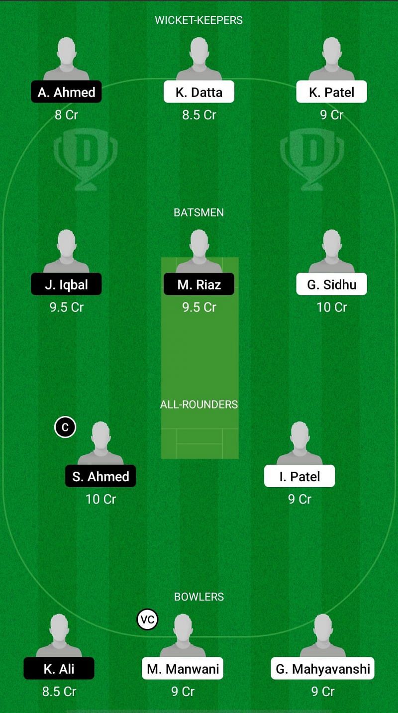 Fantasy Suggestion #1: Datta Karan, Kishitij Patel, Awais Ahmed, Gurwinder Sidhu, Jafar Iqbal, Muhammad Riaz, Ishan Patel, Sarfraz Ahmed, Gaurang Mahyavanshi, Manish Manwani, Khizar Ali.
