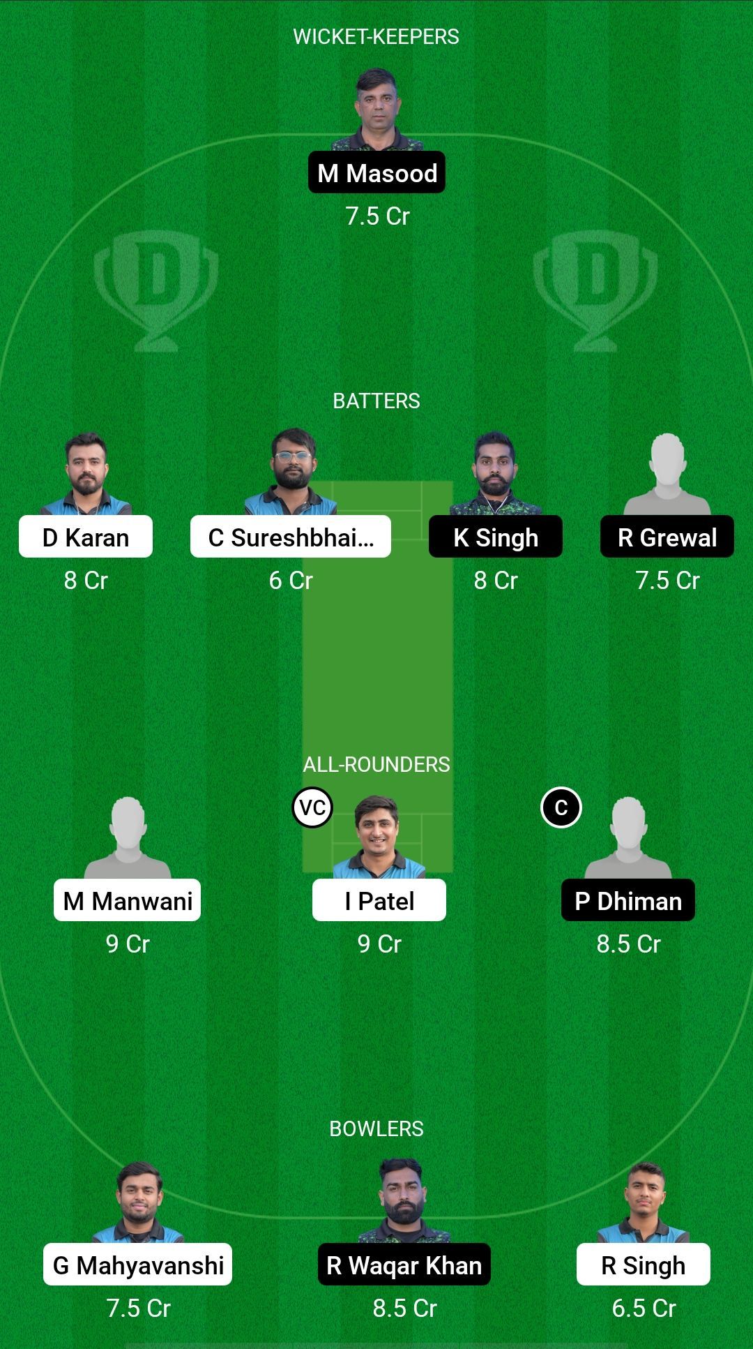 Bowlers: Gaurang Mahyavanshi, Waqar Khan, Ranveer Singh