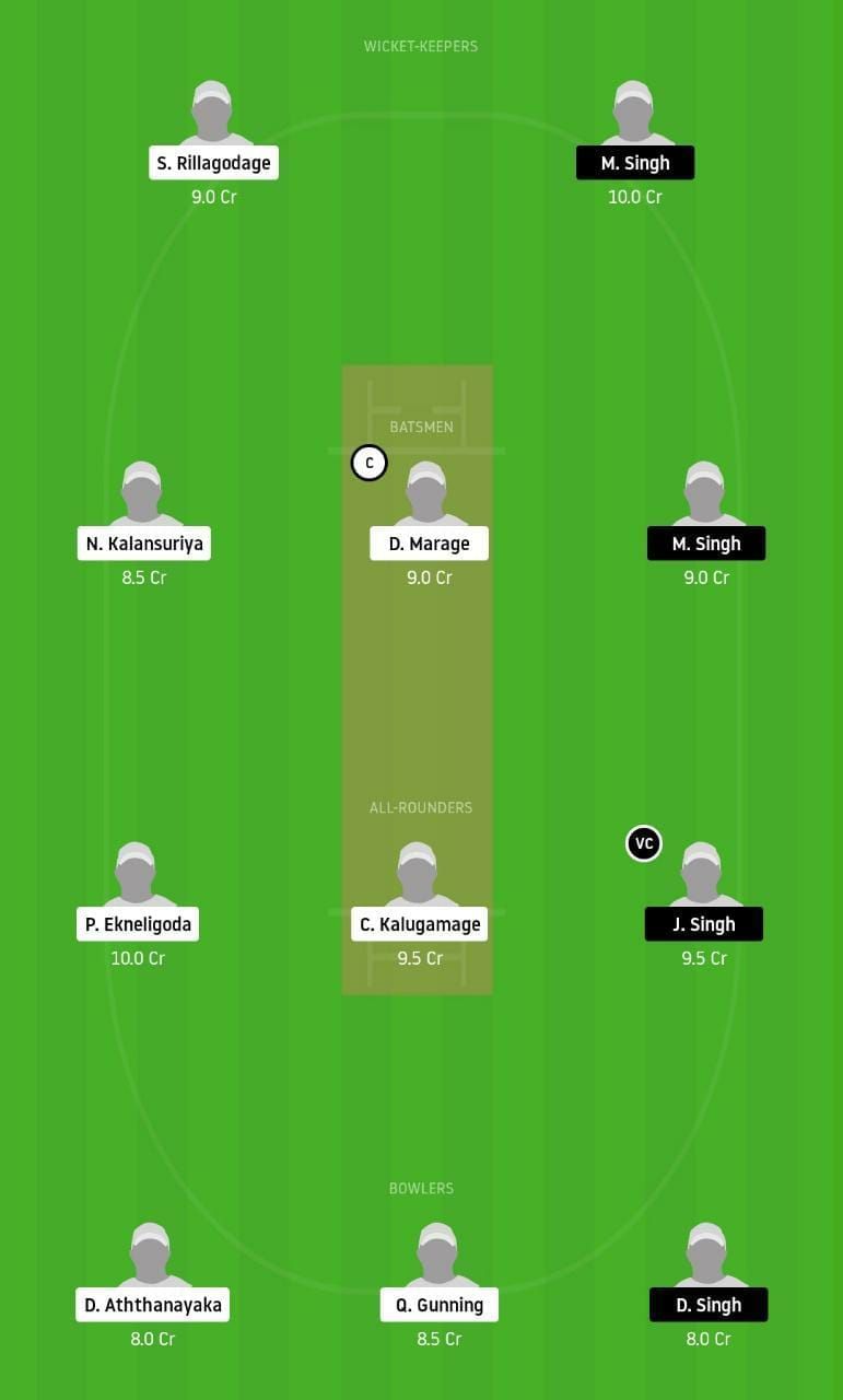 Fantasy Suggestion #1: M Singh, S Rillagodage, D Marage, N Kulansuriya, M Singh, J Singh, C Kalugamage, P Ekneligoda, Q Gunning, D Aththanayake and D Singh