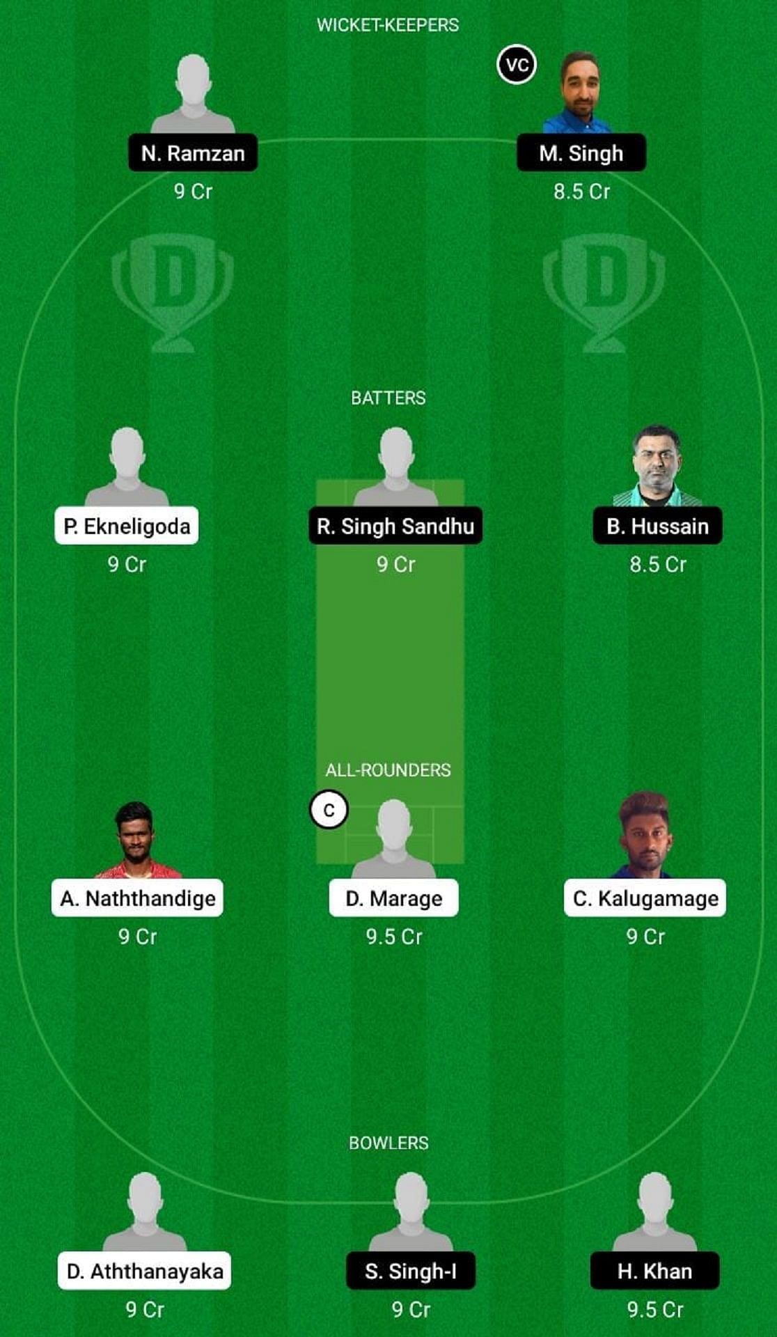 Fantasy Suggestion #1: M Singh, R Singh Sandhu, B Hussain, P Ekneligoda, D Singh Shekhawat, A Naththandige, C Kalugamage, D Marage, S Singh, H Khan, D Aththanayaka.