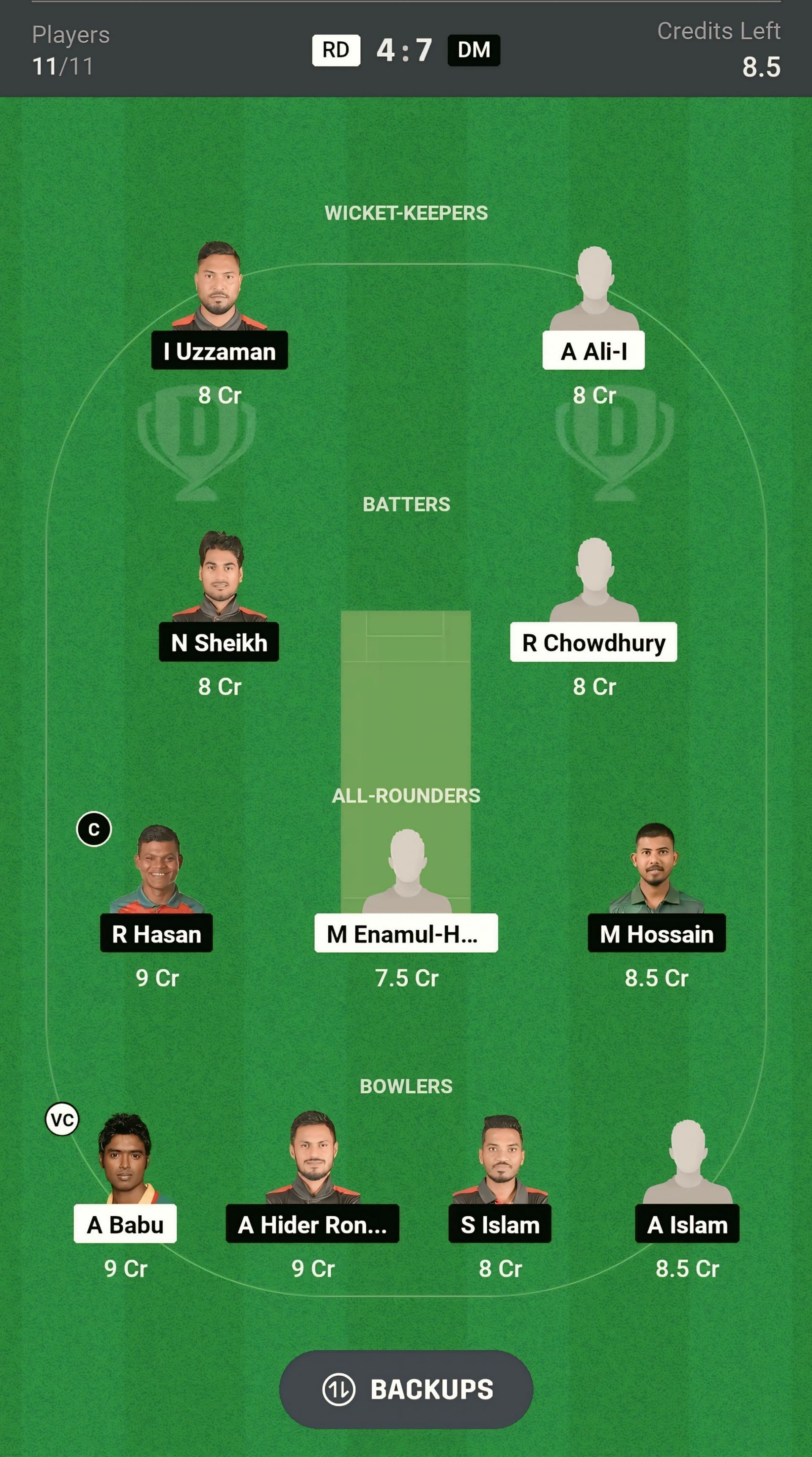 R Hasan and M Hossain are the best all-rounder picks for the Dream11 team. Both players will play crucial roles in today's match.
