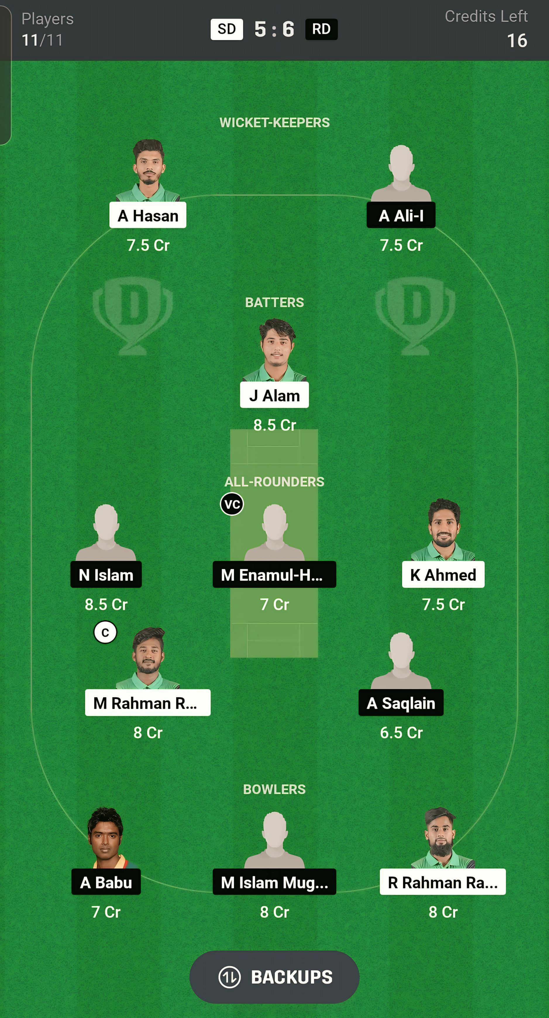M Rahman and N Islam are the best all-rounder picks for the Dream11 team. Both players will play crucial roles in today's match. M Rahman will bat in the top order and bowl a good number of overs in today's match. K Ahmed is another good all-rounder for today's match.