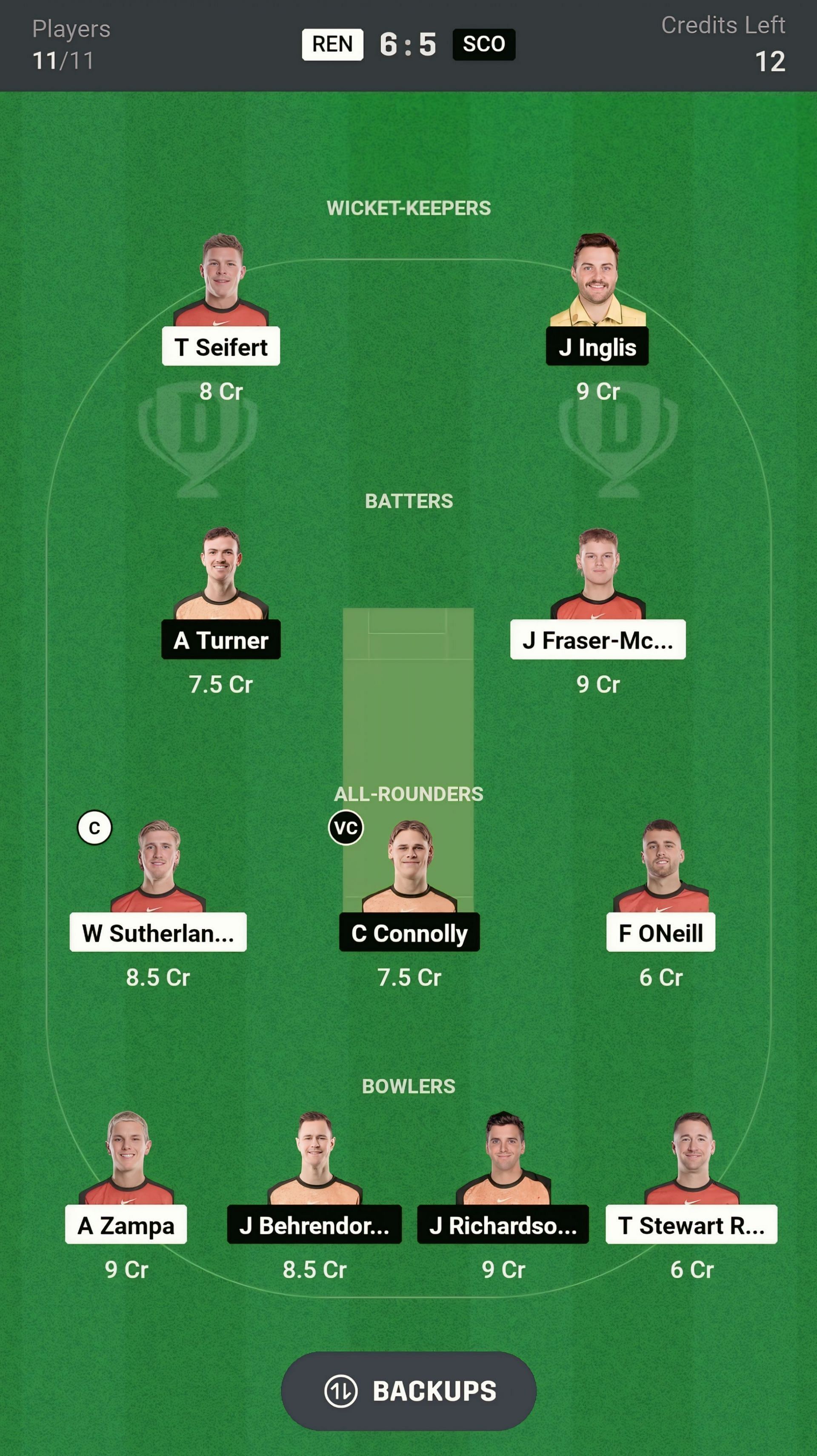 Will Sutherland is one of the most crucial picks from the Melbourne Renegades squad. He is in top notch form and can once again perform well at this venue. He will complete his quota of overs. He has smashed 36 runs and taken 5 wickets in the last two matches.