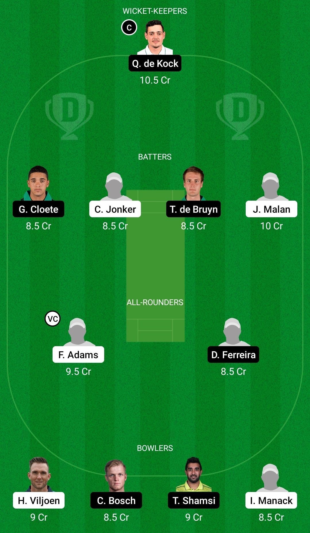 Fantasy Suggestion #1: Quinton de Kock, Gihahn Cloete, Christiaan Jonker, Theunis de Bruyn, Janneman Malan, Ferisco Adams, Donavon Ferreira, Hardus Viljoen, Corbin Bosch, Tabraiz Shamsi, Imran Manack