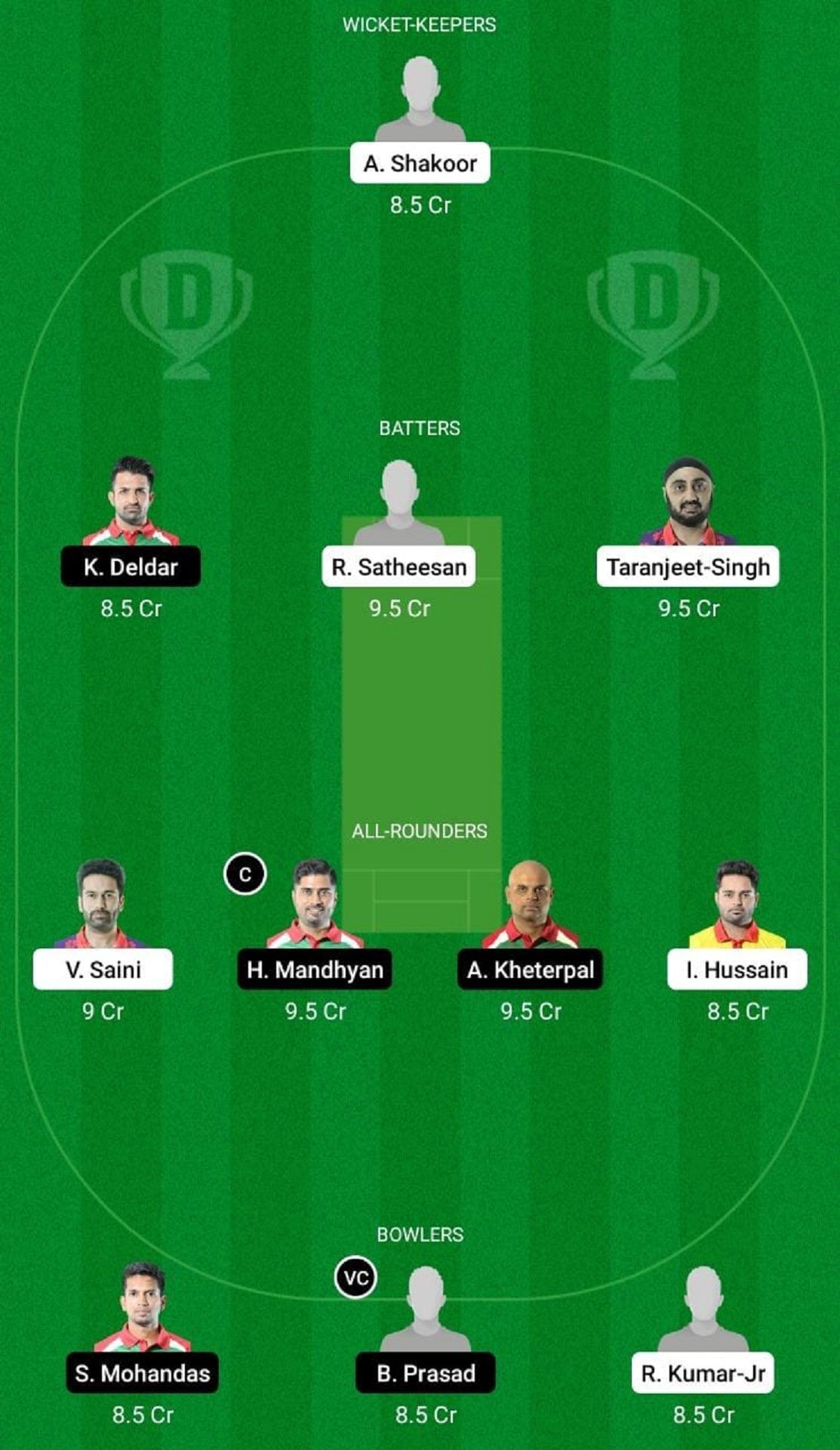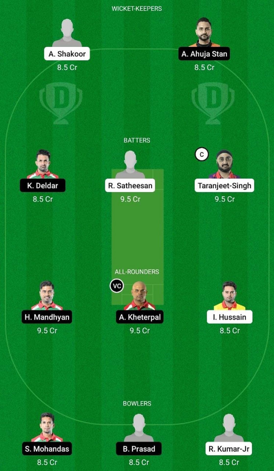 Fantasy Suggestion #1: A Ahuja Stan, A Shakoor, T Singh, K Deldar, R Satheesan, A Kheterpal, H Mandhyan, I Hussain, B Prasad, S Mohandas, R Kumar Jr