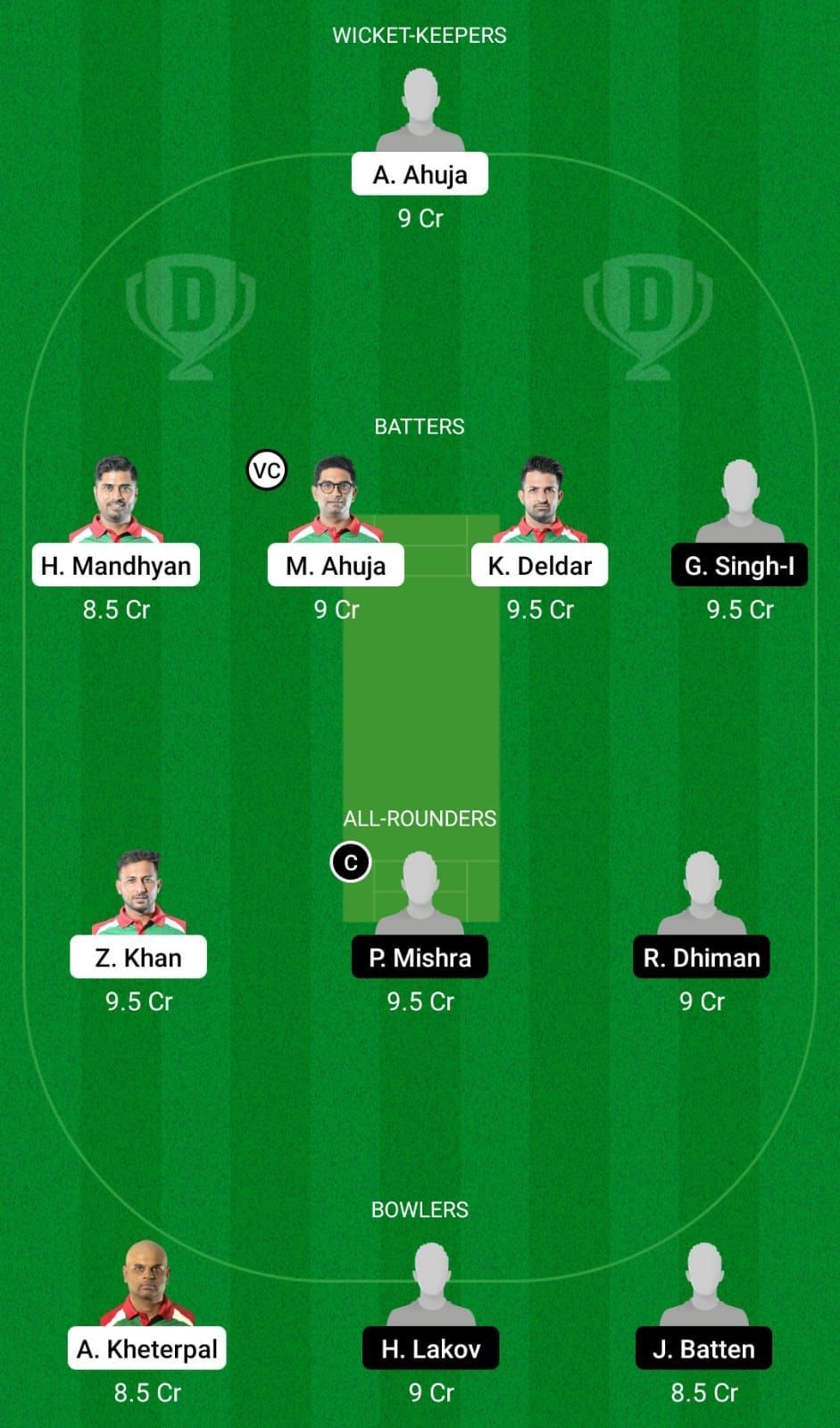 Fantasy Suggestion #1: Abhishek Ahuja, Marc Ahuja, Gagandeep Singh, Zeeshan Khan, Prakash Mishra, Hristo Lakov, Abhishek Kheterpal, Harsh Mandhyan, Khaibar Deldar, Rohit Dhiman, Jamie Batten