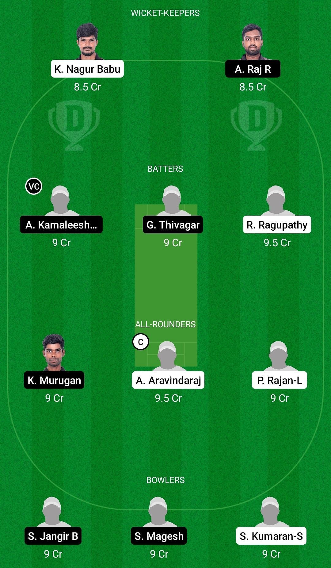 Captain: Aravind Raj R Vice-captain: A Kamaleeshwaran