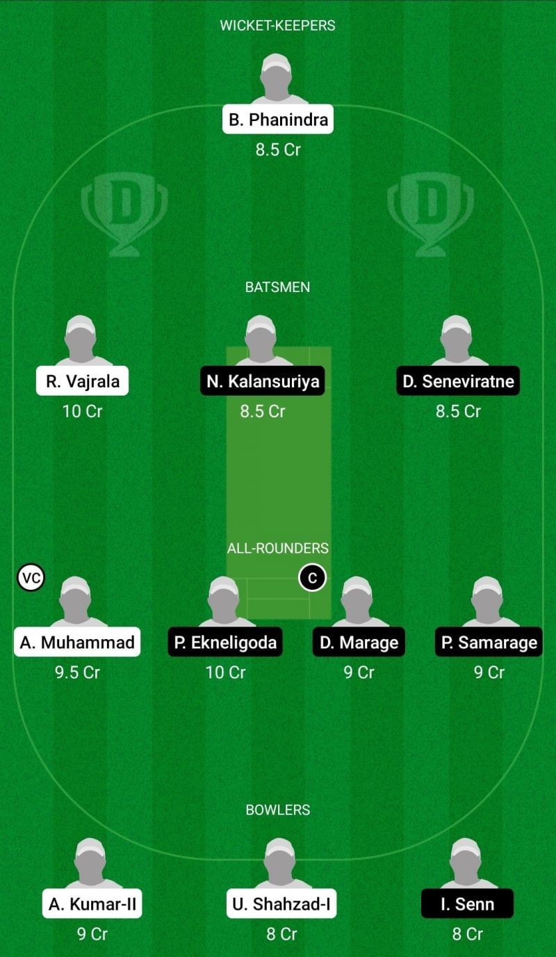 Fantasy Suggestion #2: Kaniska Weligamage, Vajrala Reddy, Navodh Kalansuriya, Denham Seneviratne, Arif Muhammad, Muneeb Niazi, Dinidu Marage, Pruthuvi Samarage, Anil Kumar, Dammika Aththanayaka, Indika Senn
