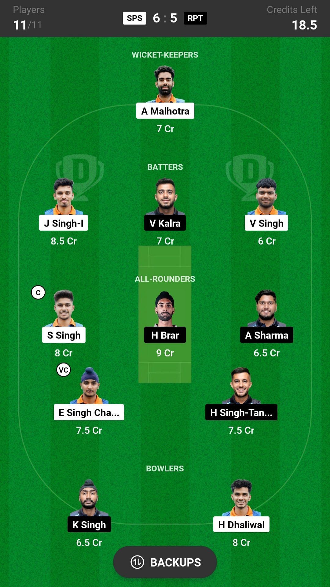 S Singh and H Brar are the best all-rounder picks for the Dream11 team as they are batting in the top order and also completing their quota of overs. E Singh is another good pick for today's Dream11 match.