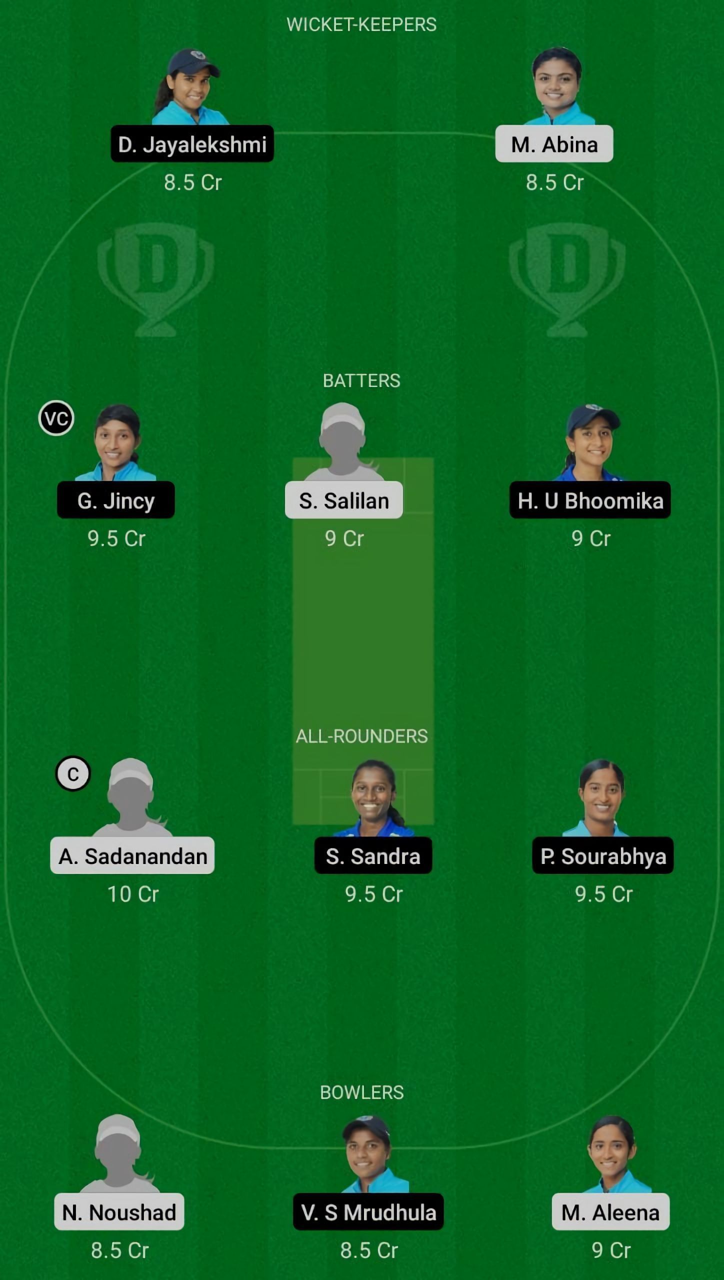 Fantasy Suggestion #1: M Abina, D Jayalekshmi, G Jincy, H U Bhoomika, S Salilan, A Sadanandan, P Sourabhya, S Sandra, N Noushad, M Aleena, V S Mrudhula