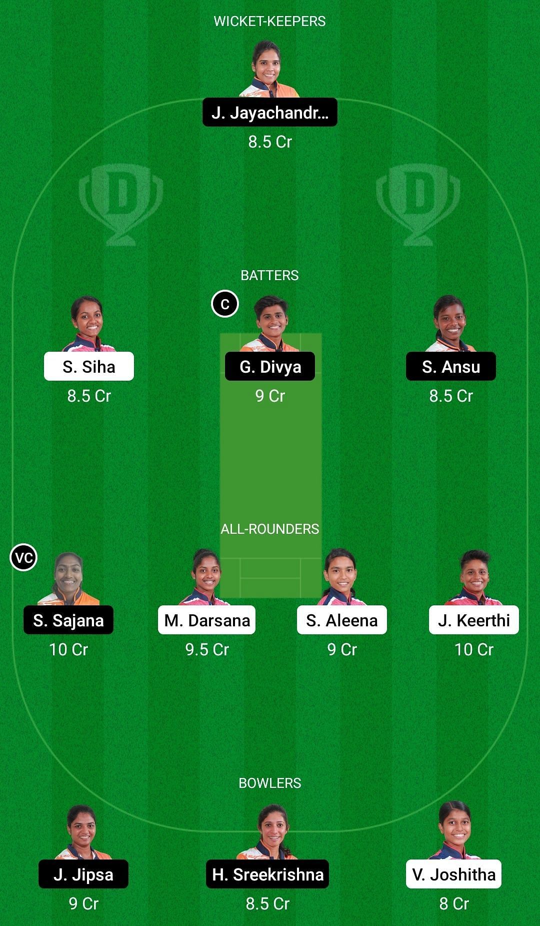 Bowlers: Jipsa Joseph, Sreekrishna Haridas, VJ Joshitha