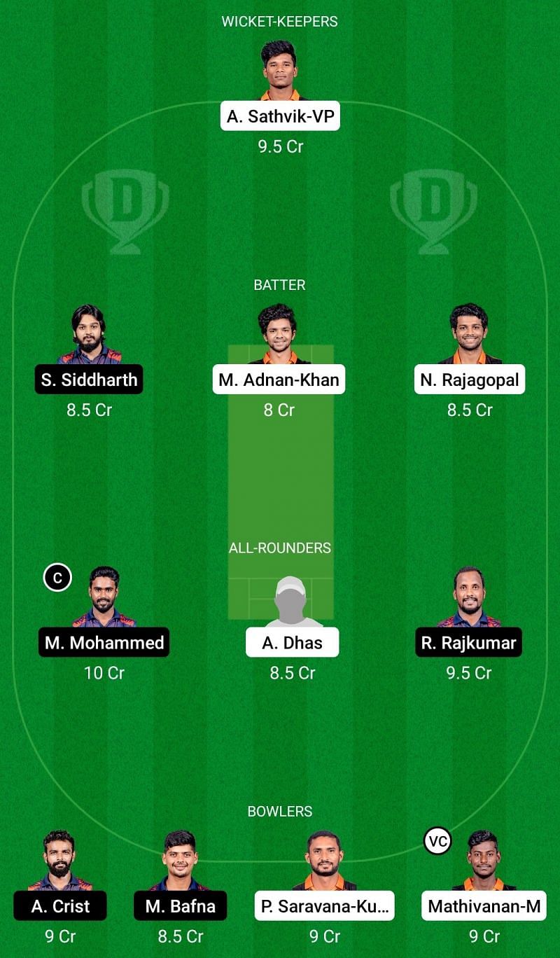Fantasy Suggestion #2: N Mohammed, Amit Sathvik, P Francis Rokins, Muhammed Adnan Khan, Nidhish Rajagopal, M Mohammed, Antony Dhas, R Rajkumar, Aswin Crist, Rahil Shah, M Mathivannan