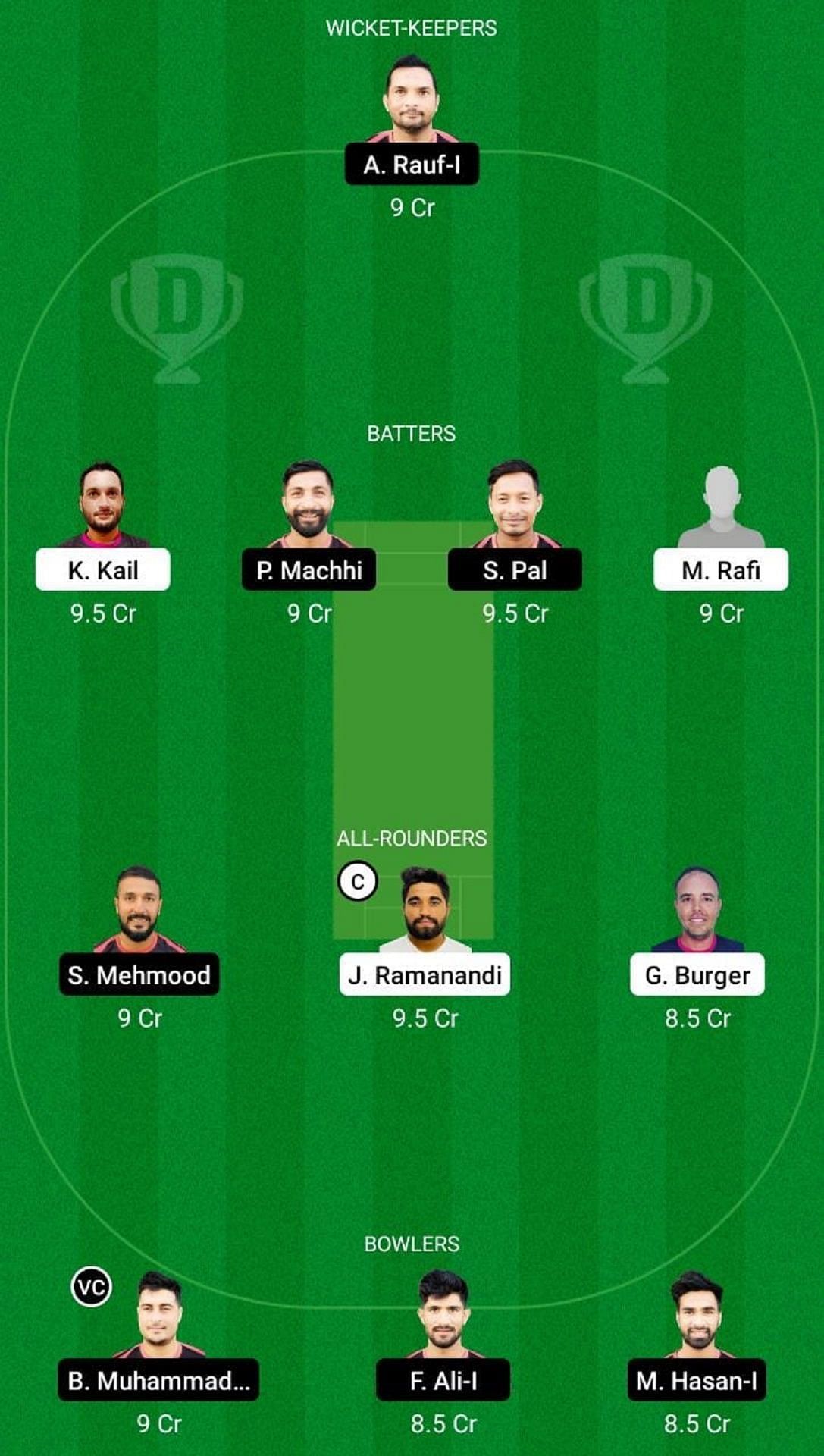 Fantasy Suggestion #1: A. Rauf, P. Machhi, S. Pal, K. Kail, M. Rafi, S. Mehmood, G. Burger, J. Ramanandi, B.Shah, M. Hasan, F. Ali