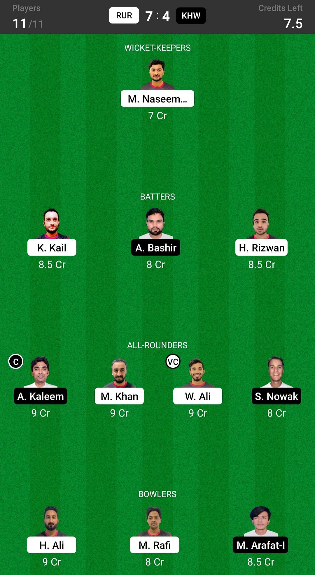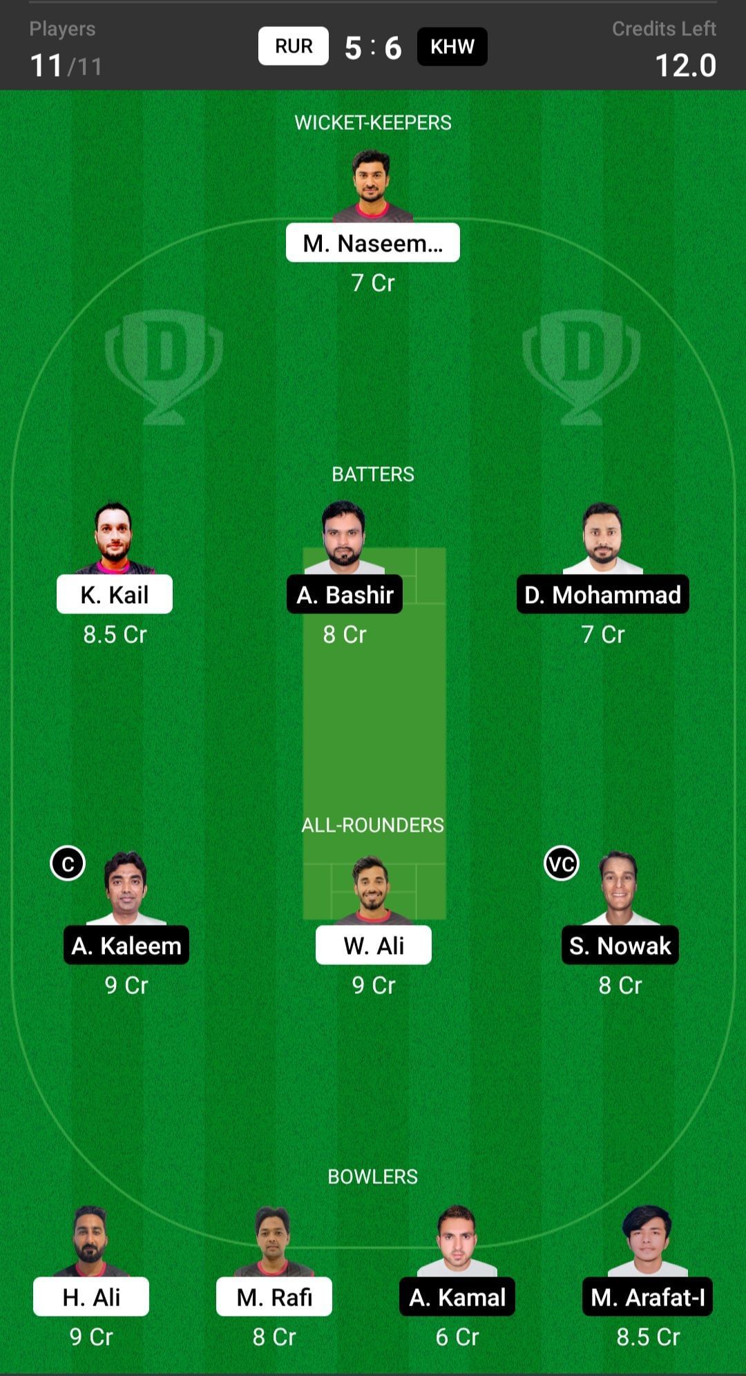 A Kaleem and M Khan are the best all-rounder picks for the Dream11 team as they are batting in the top order and also completing their quota of overs. W Ali is another good pick for today's Dream11 team.