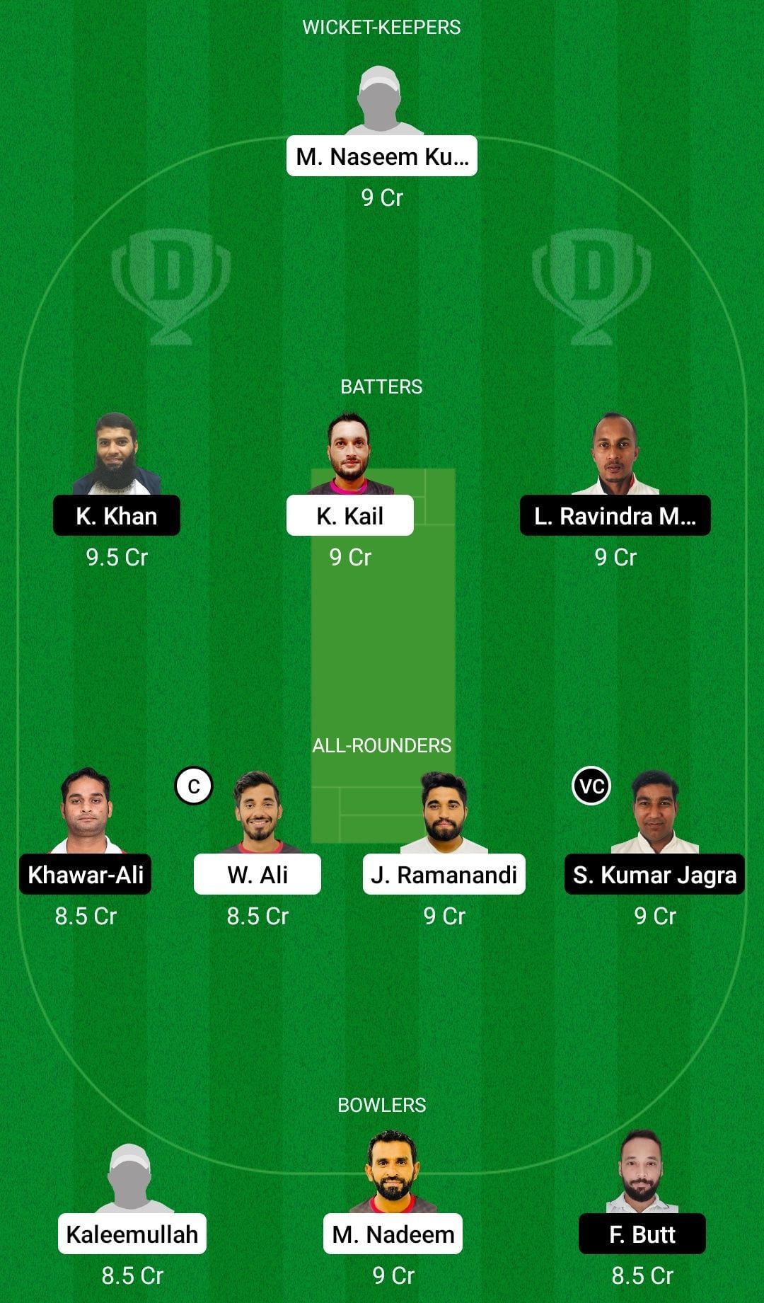 Fantasy Suggestion #1: Naseem Khushi, Khurram Khan, Khalid Kail, Lakpriya Ravindra mudunkothge, Khawar Ali, Wasim Ali, Jitenkumar Ramanandi, Sachin Kumar Jagra, Kaleemullah, Muhammad Nadeem, Fayyaz Butt