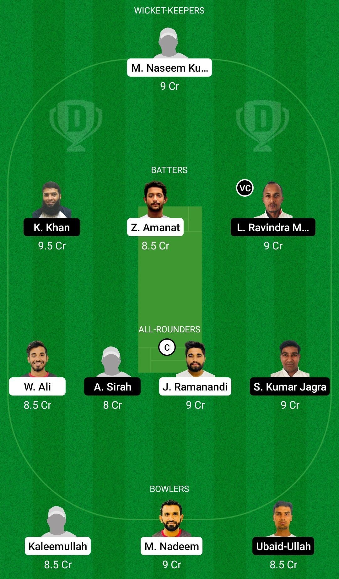 Fantasy Suggestion #2: Naseem Khushi, Khurram Khan, Zohaib Amanat, Lakpriya Ravindra mudunkothge, Wasim Ali, Amanpreet Sirah, Jitenkumar Ramanandi, Sachin Kumar Jagra, Kaleemullah, Muhammad Nadeem, Ubaid Ullah