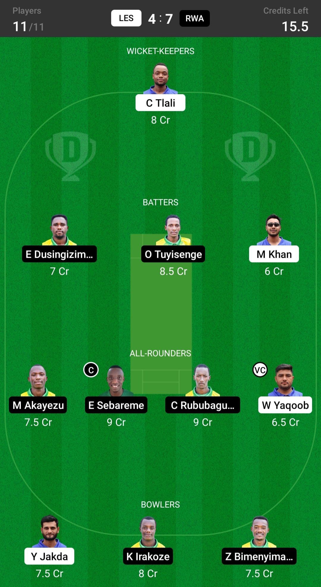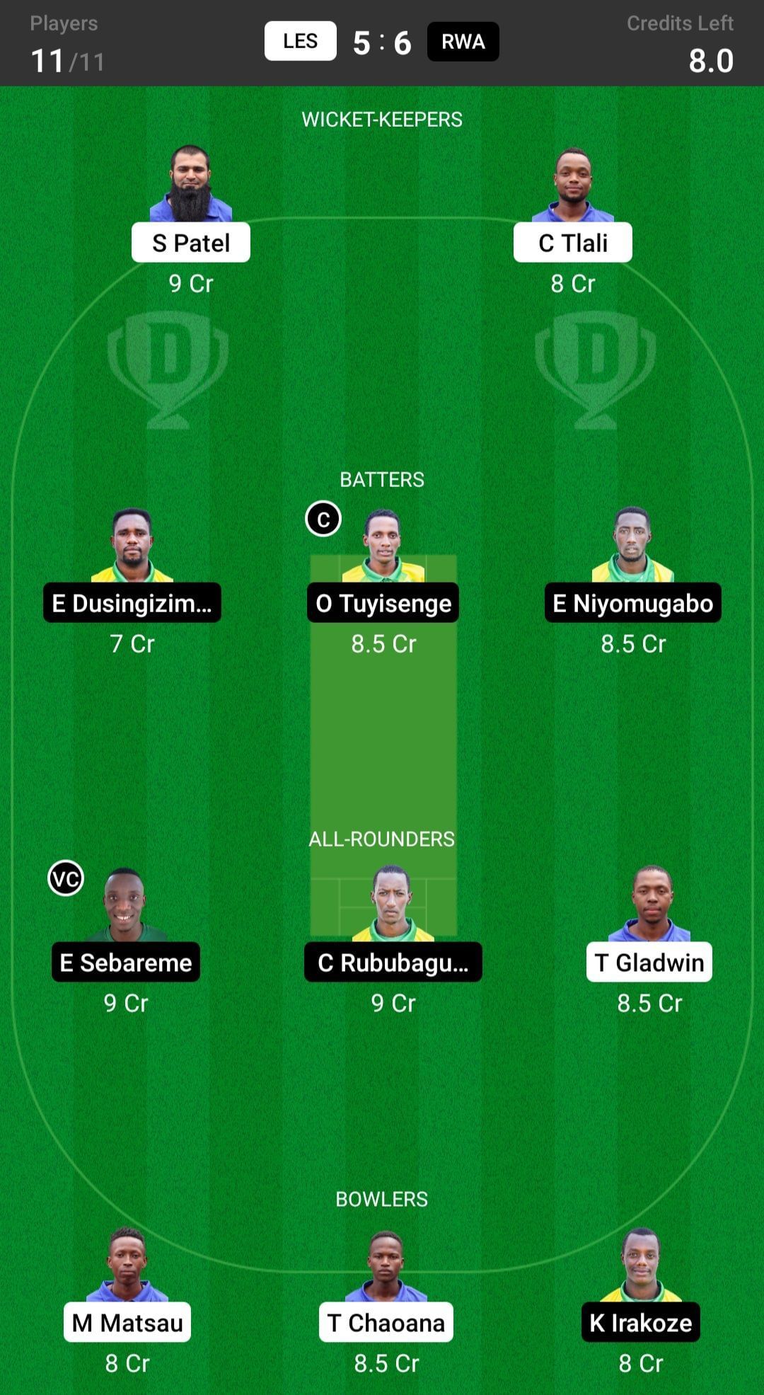 E Niyomugabo and O Tuyisenge are the two best batter picks for the Dream11 team. E Dusingizimana has played exceptionally well in the last few matches, so he is also a good pick for today's Dream11 team.