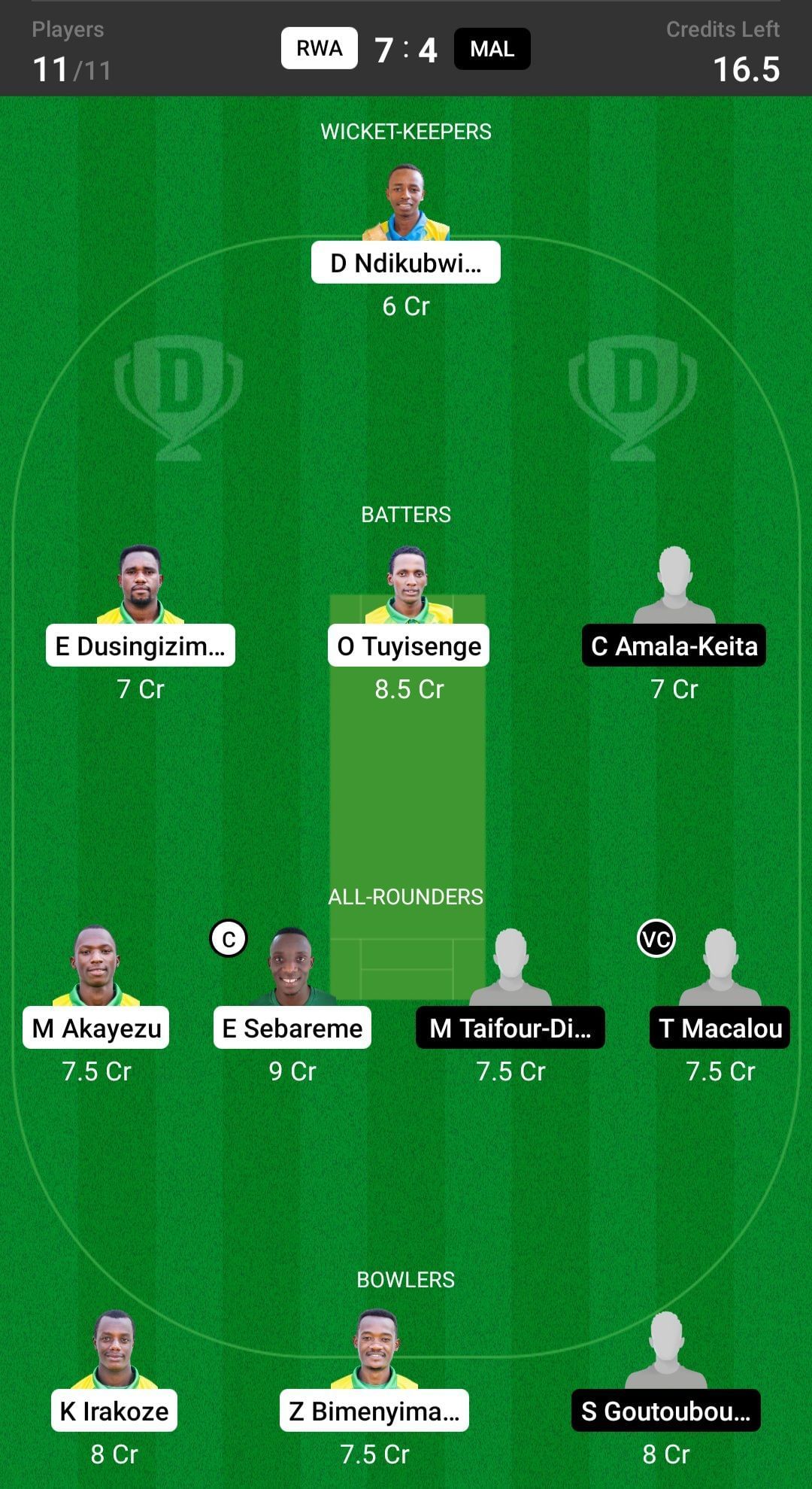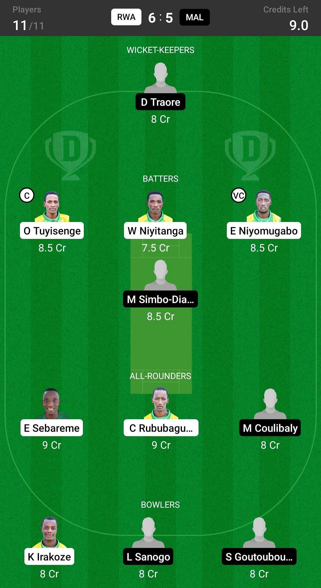 Rwanda vs Mali Dream11 Prediction, Grand League