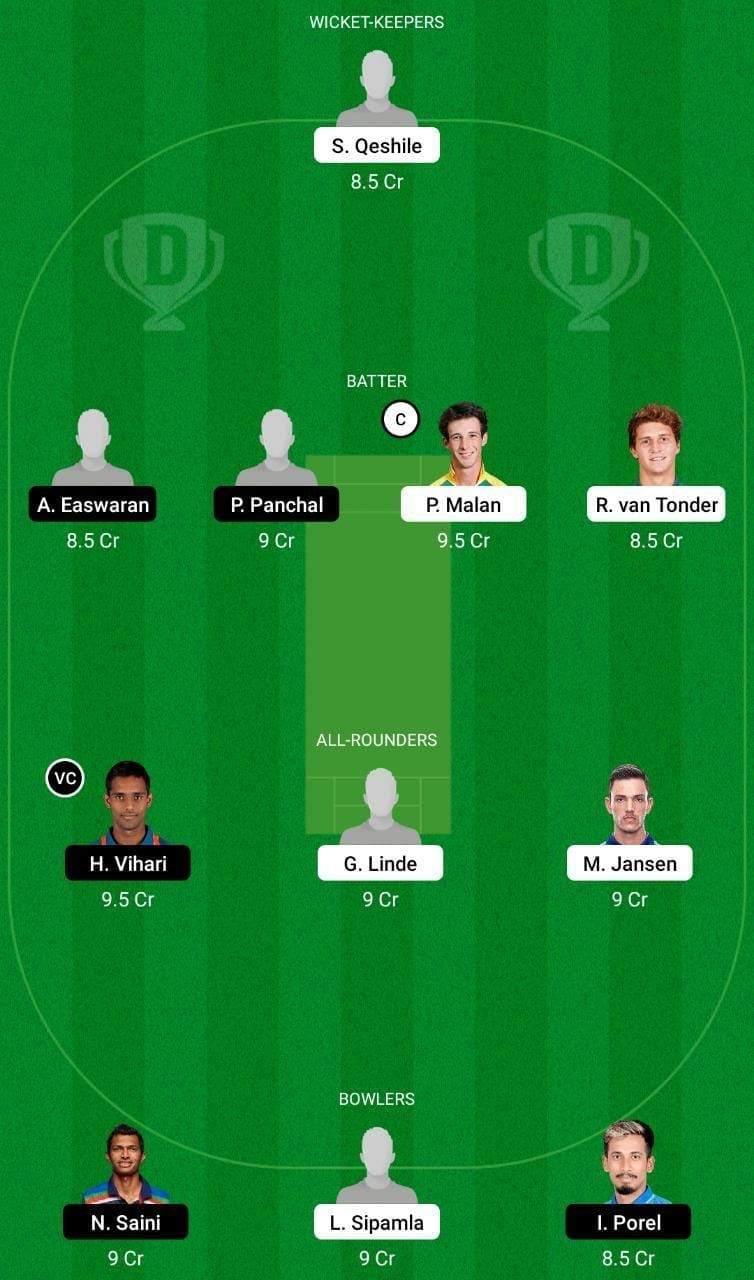 Fantasy Suggestion #1: S Qeshile, A Easwaran, P Panchal, P Malan, R van Tonder, H Vihari, G Linde, M Jansen, N Saini, L Sipamla and I Porel