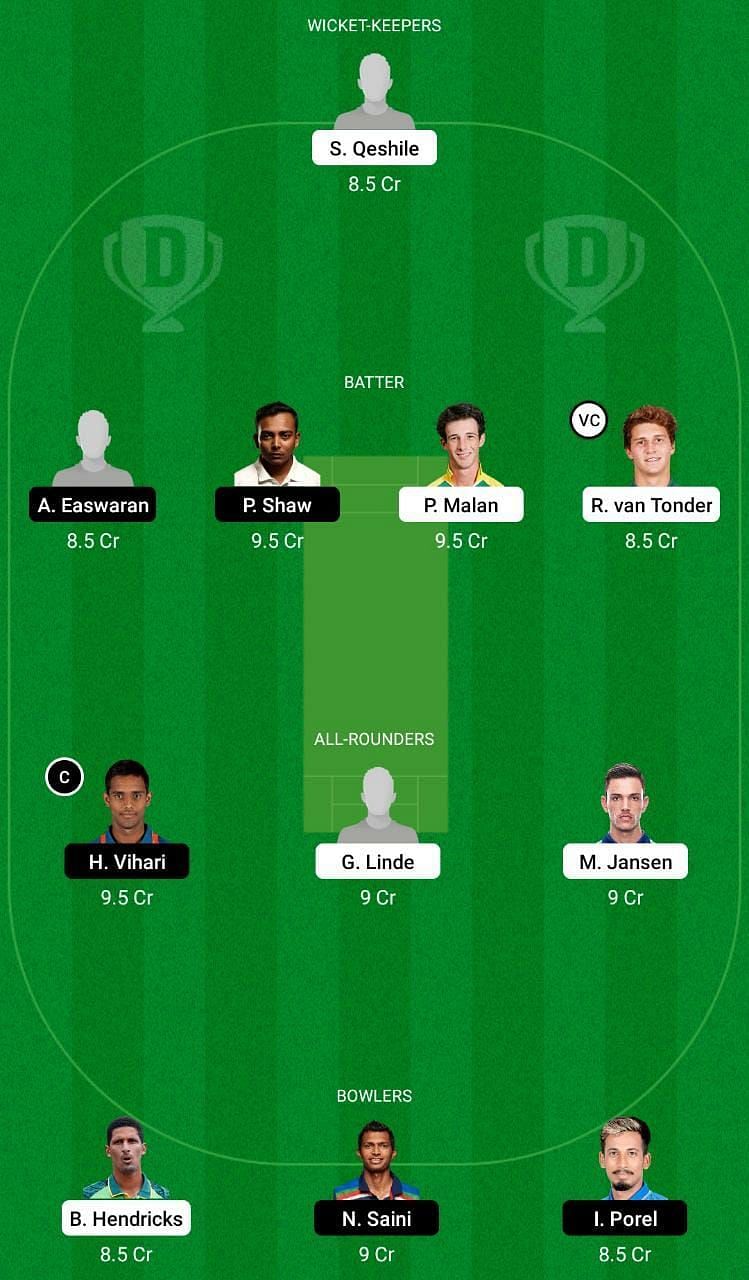 Fantasy Suggestion #2: S Qeshile, A Easwaran, P Shaw, P Malan, R van Tonder, H Vihari, G Linde, M Jansen, N Saini, B Hendricks and I Porel