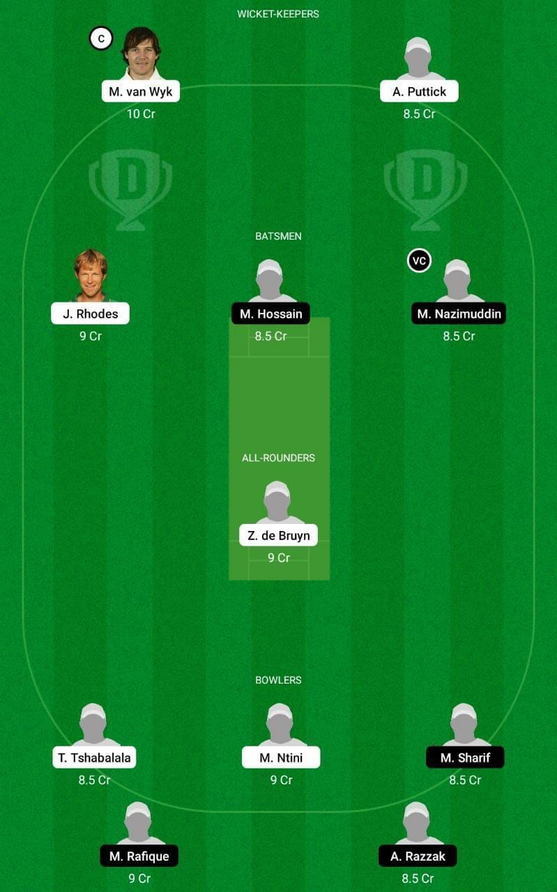 Fantasy Suggestion #1: M van Wyk, A Puttick, M Nazimuddin, M Hossain, J Rhodes, Z de Bruyn, M Rafique, T Tshabalala, M Ntini, A Razzak and M Sharif