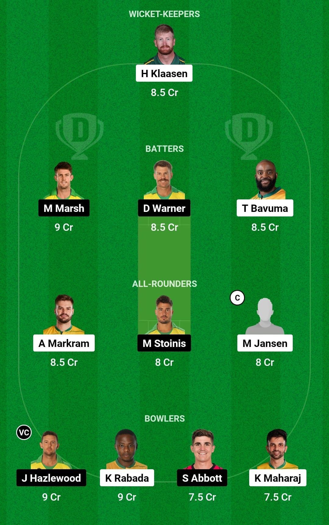 Both teams have some quality top-order batters and effective all-rounders who could be key picks. Thus, the likes of Mitchell Marsh, David Warner, Marcus Stoinis, Temba Bavuma, Marco Jansen, and Aiden Markram could be the ones to watch out for.